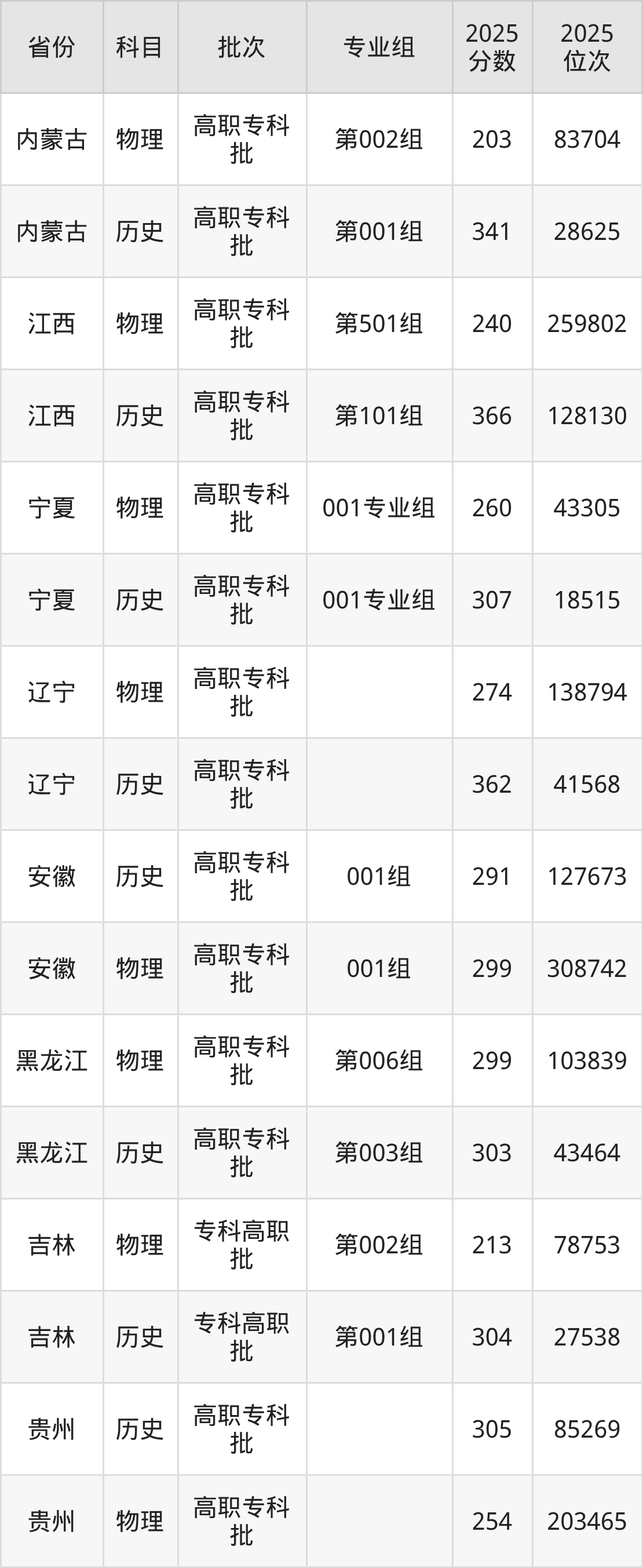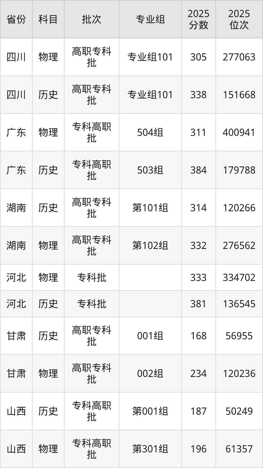 2025年投档录取最低分为305分,录取最低位次为85269名。