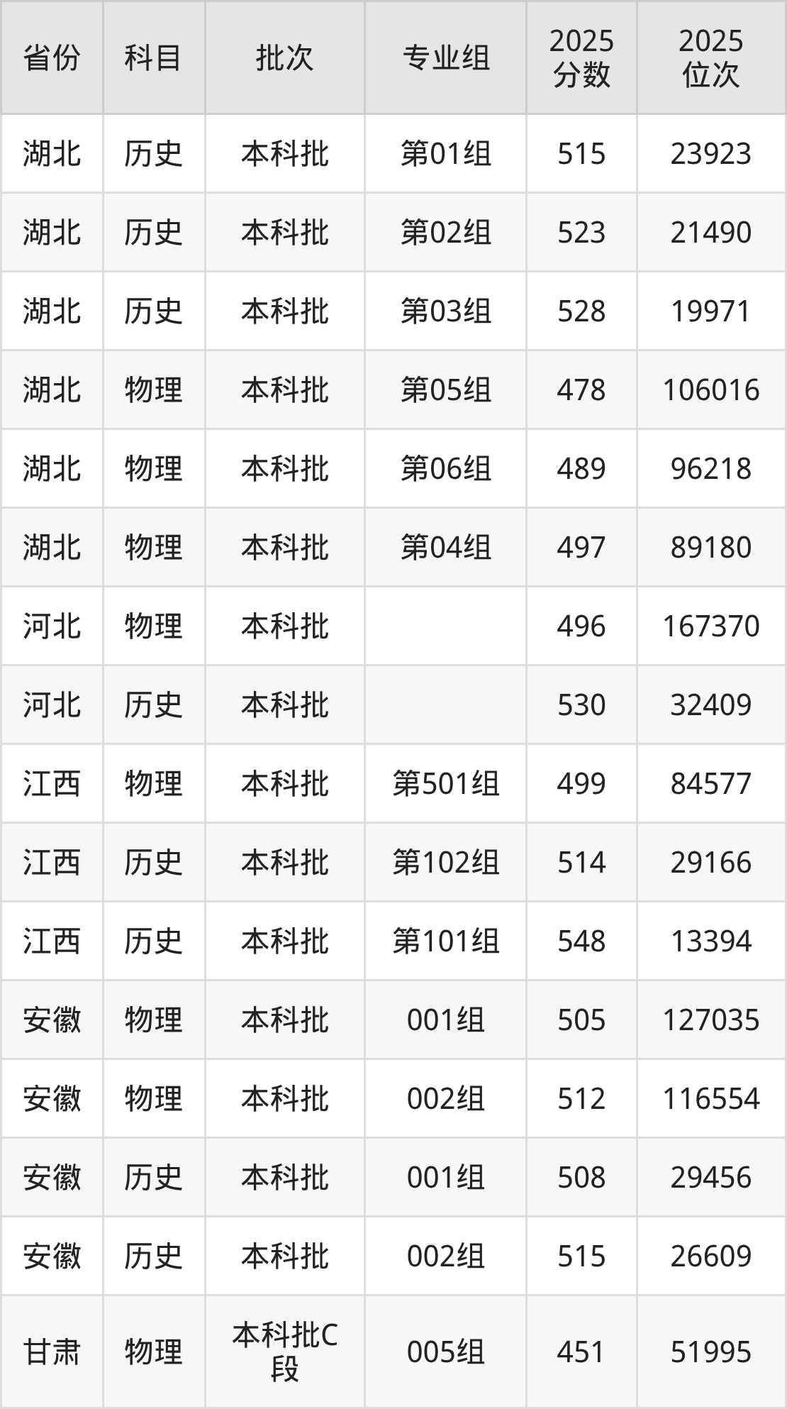 石家庄学院第01组:2025年投档录取最低分为515分,录取最低位次为23923名。