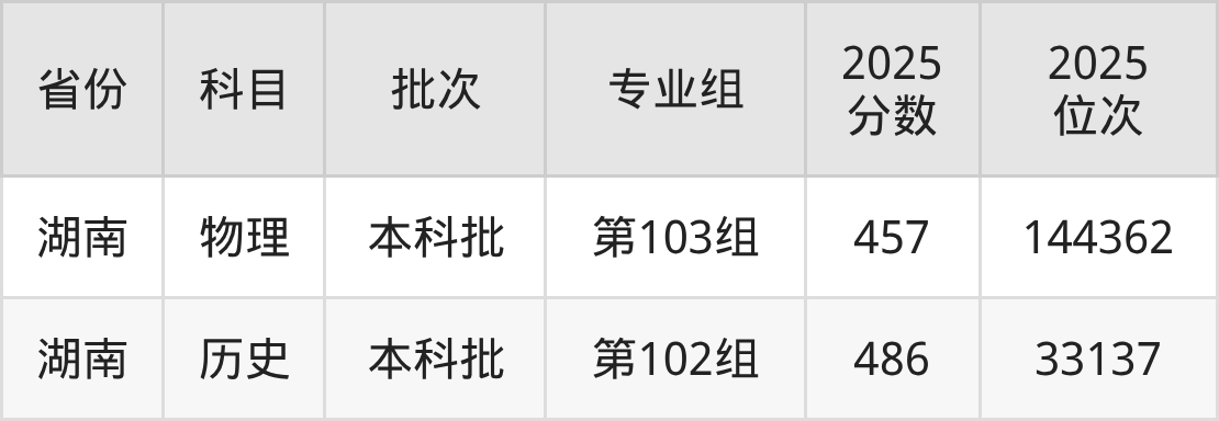 2025年在本科历史类进行招生,各专业组分数线详情如下: