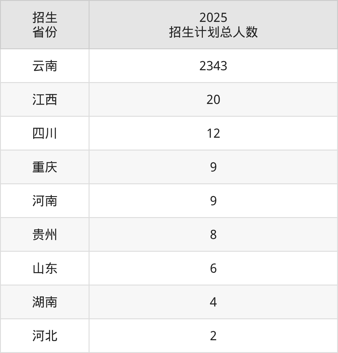 2025年滇西科技师范学院面向全国9个省市开展本科招生;招生专业共31个,招生人数共2413人。