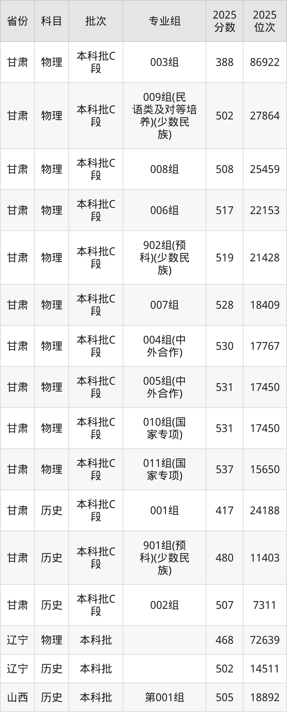 2025年投档录取最低分为502分,录取最低位次为14511名。