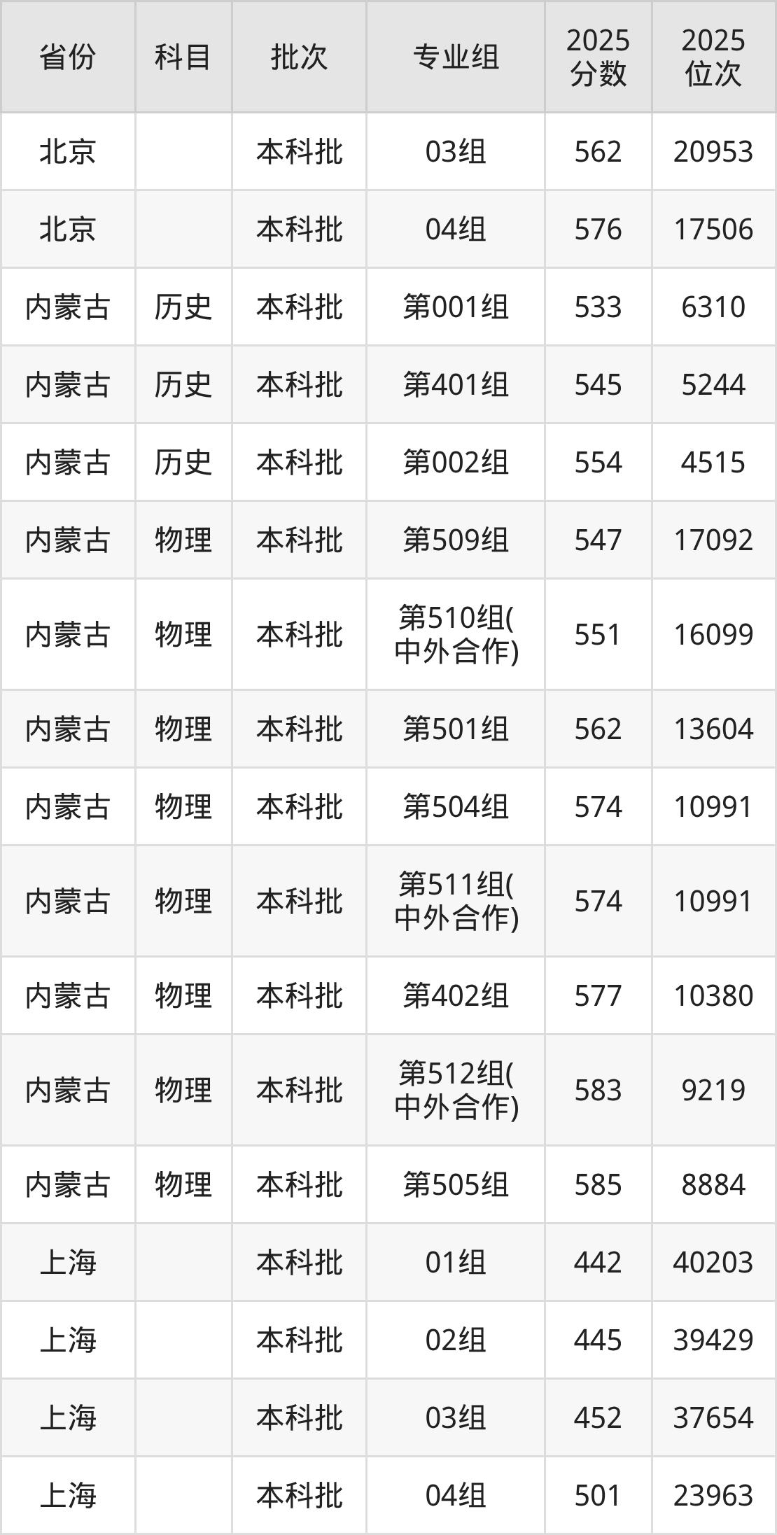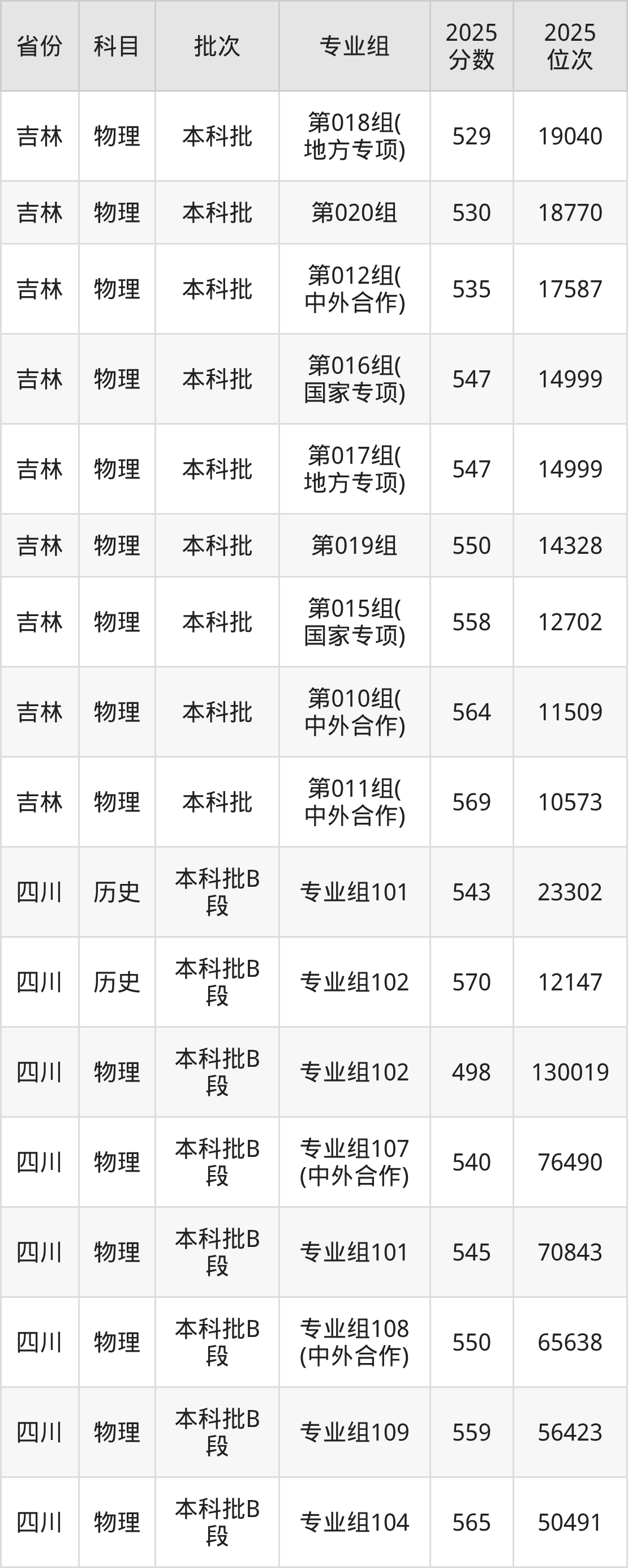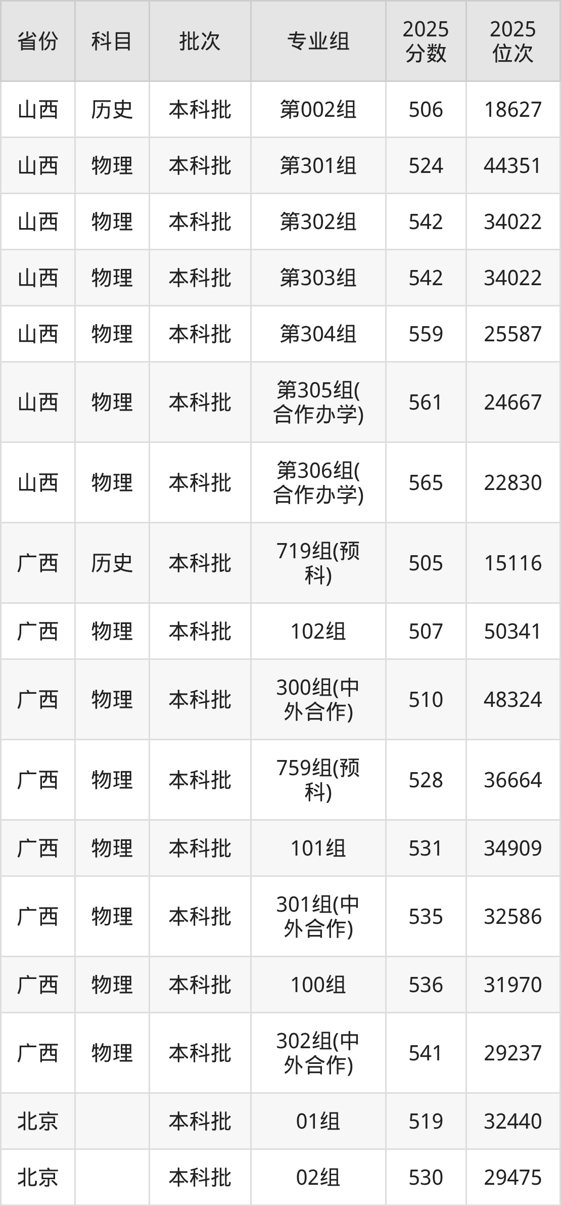 长春理工大学301组(中外合作):2025年投档录取最低分为535分,录取最低位次为32586名。