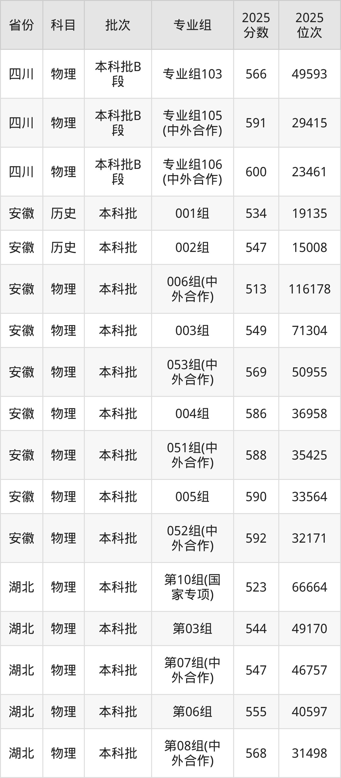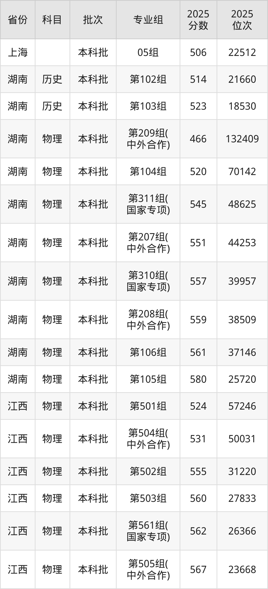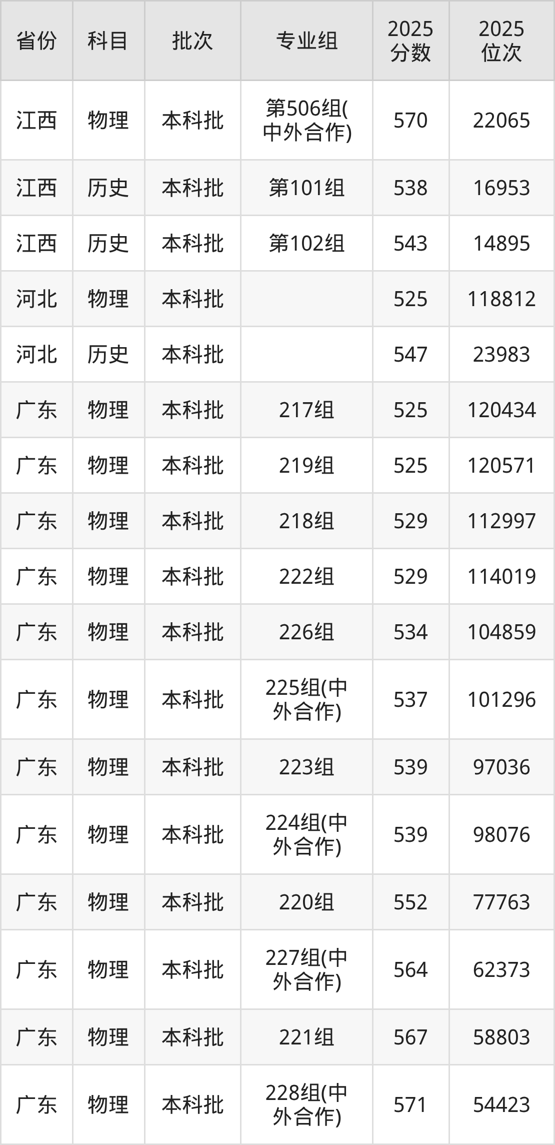 长春理工大学301组(中外合作):2025年投档录取最低分为535分,录取最低位次为32586名。