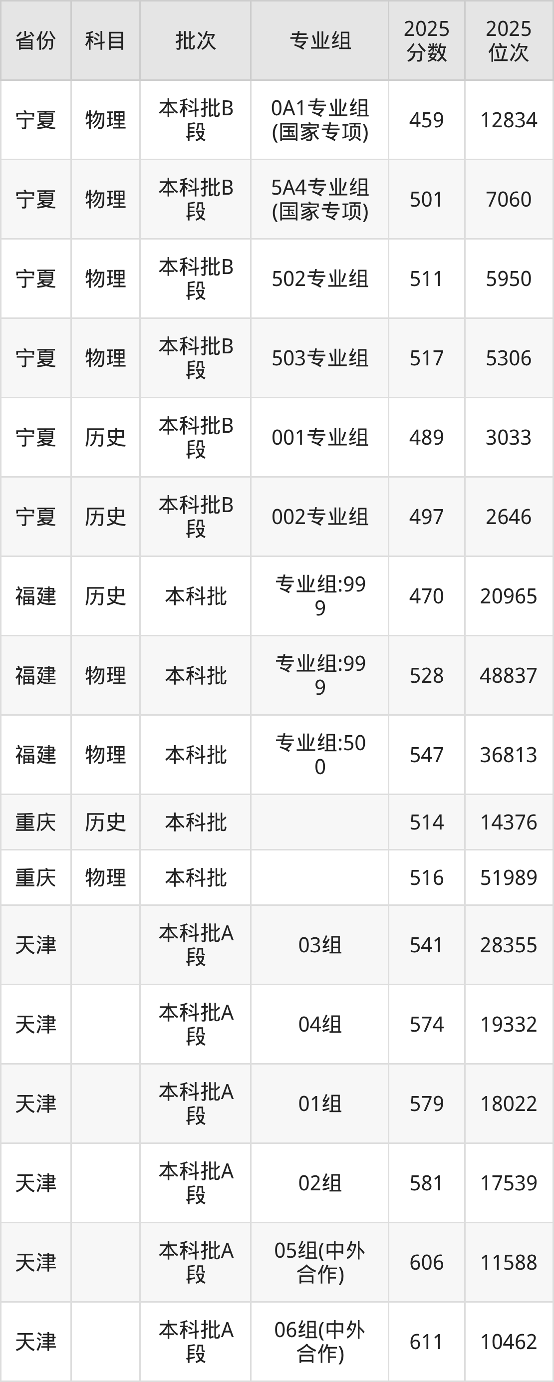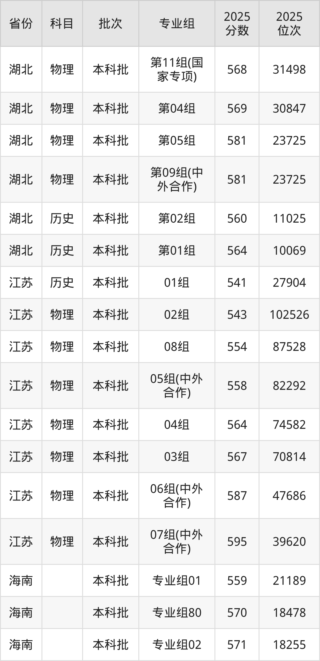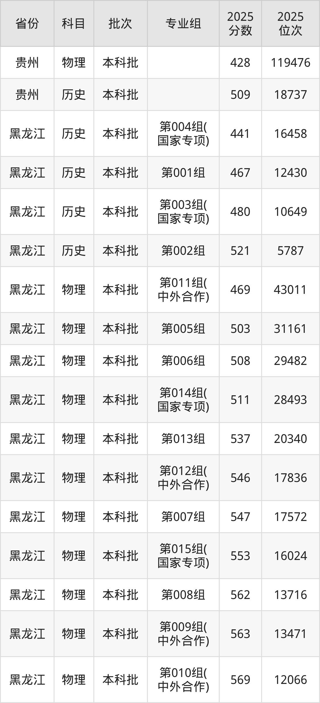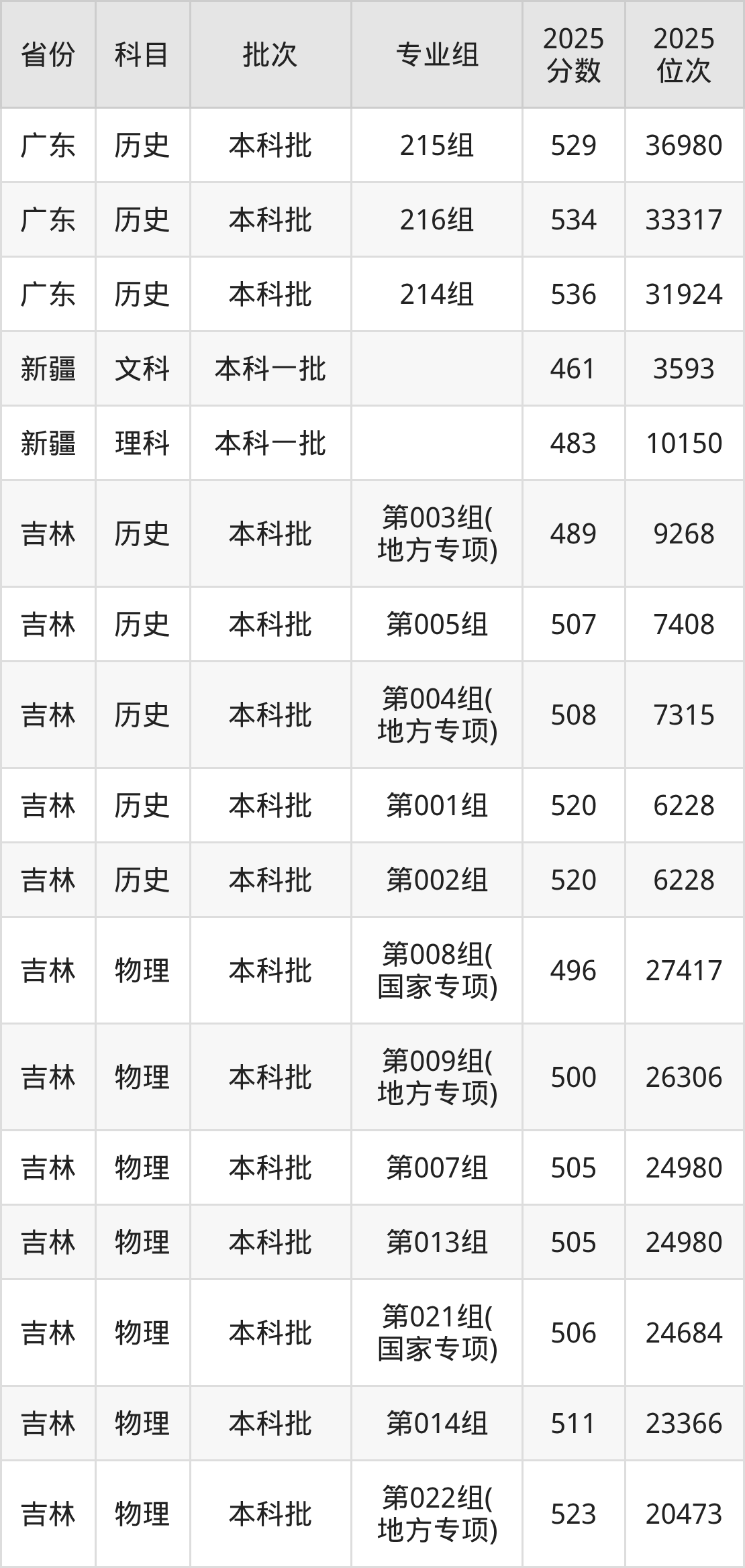 长春理工大学011专业组(国家专项计划):2025年投档录取最低分为537分,录取最低位次为15650名。