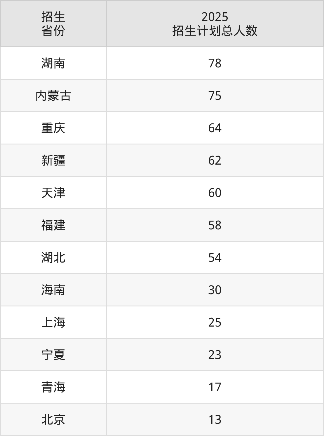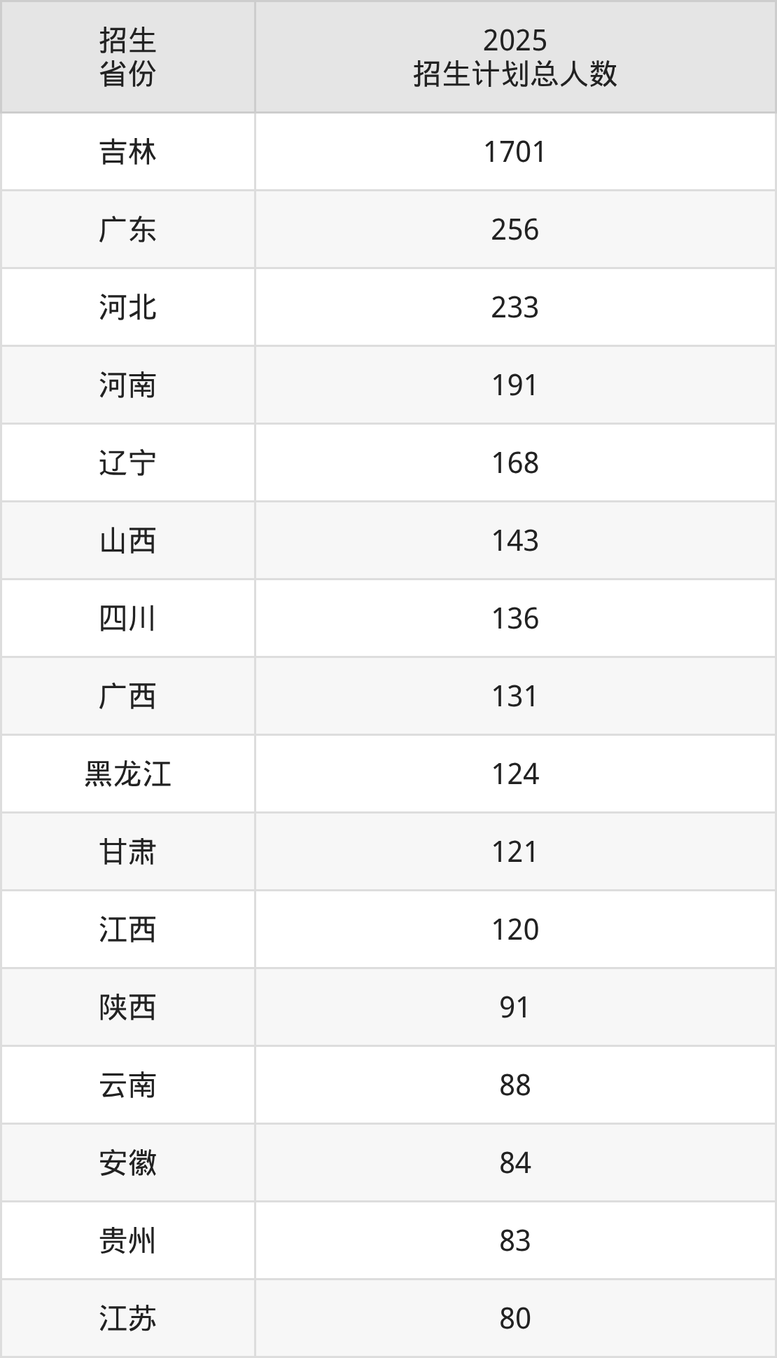 2025年长春理工大学面向全国28个省市开展本科招生;招生专业共52个,招生人数共4309人。2025年在吉林省招生计划总人数是1701人,其中,长春理工大学在吉林省招生人数最多的是电子信息工程。长春理工大学在各省具体招生人数情况如下表。