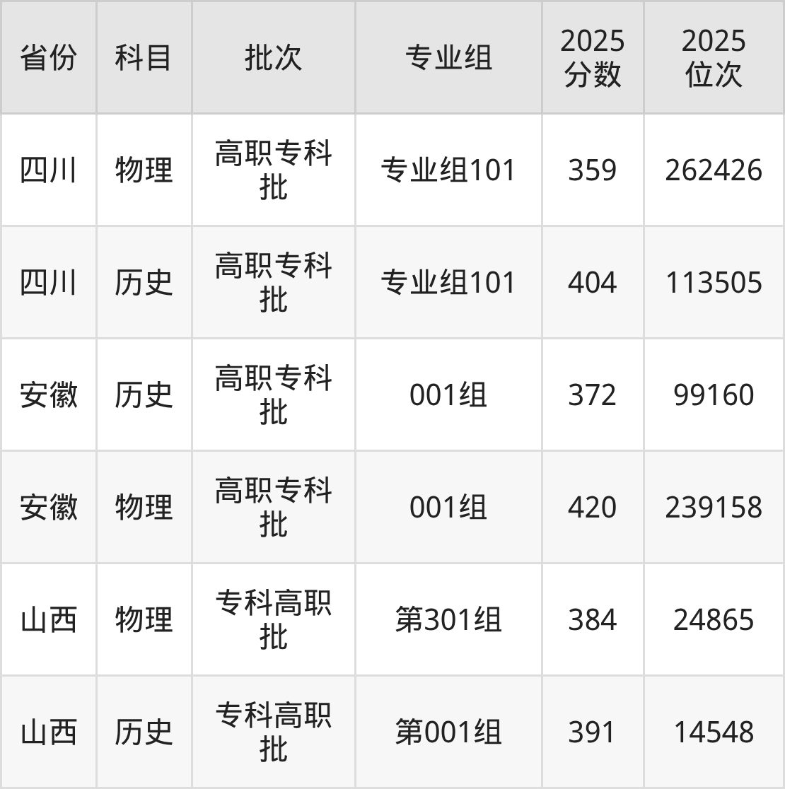 郑州卫生健康职业学院专业组101:2025年投档录取最低分为359分,录取最低位次为262426名。
