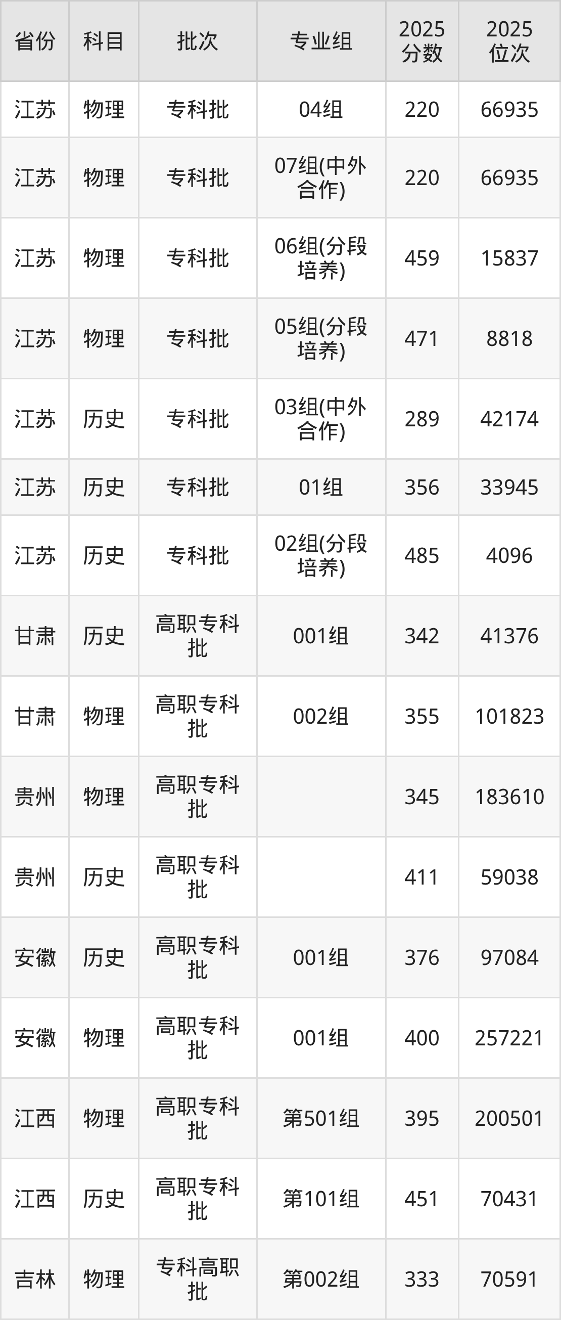 下面是2025年江苏城乡建设职业学院全国录取分数线一览表,请查阅。