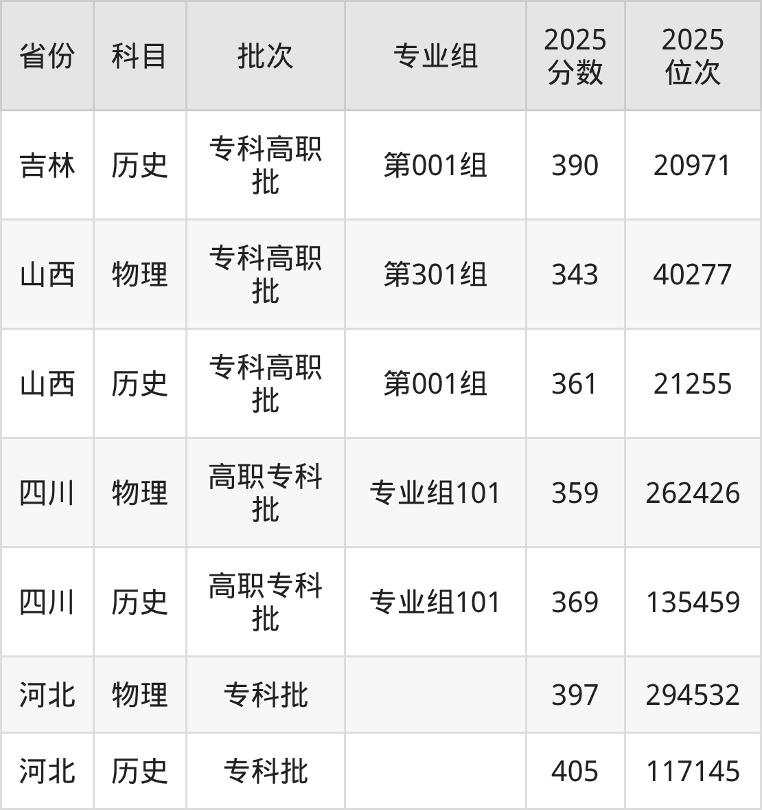 江苏城乡建设职业学院第001组:2025年投档录取最低分为390分,录取最低位次为20971名。