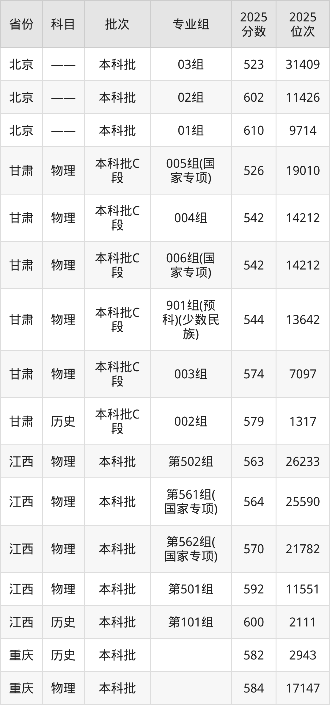 北京中医药大学第561组(国家专项):2025年投档录取最低分为564分,录取最低位次为25590名。