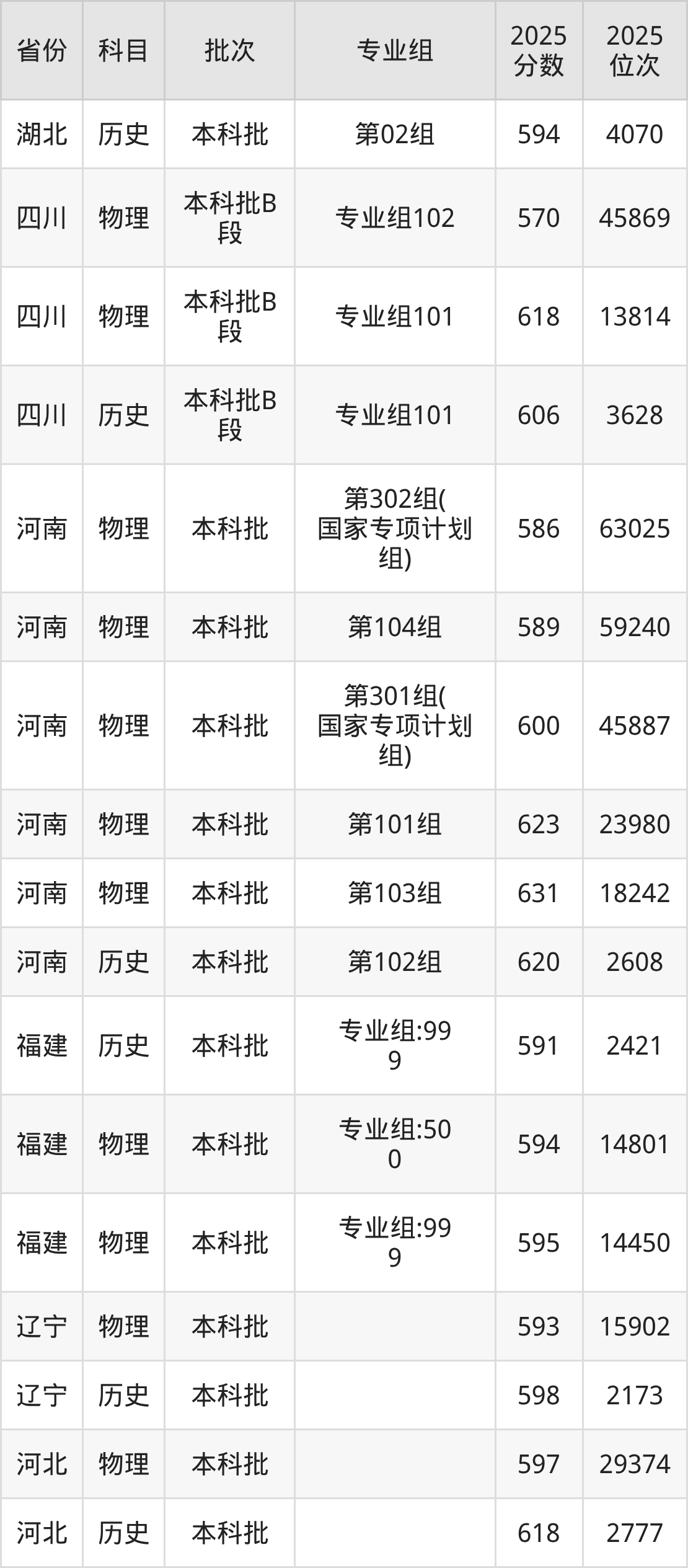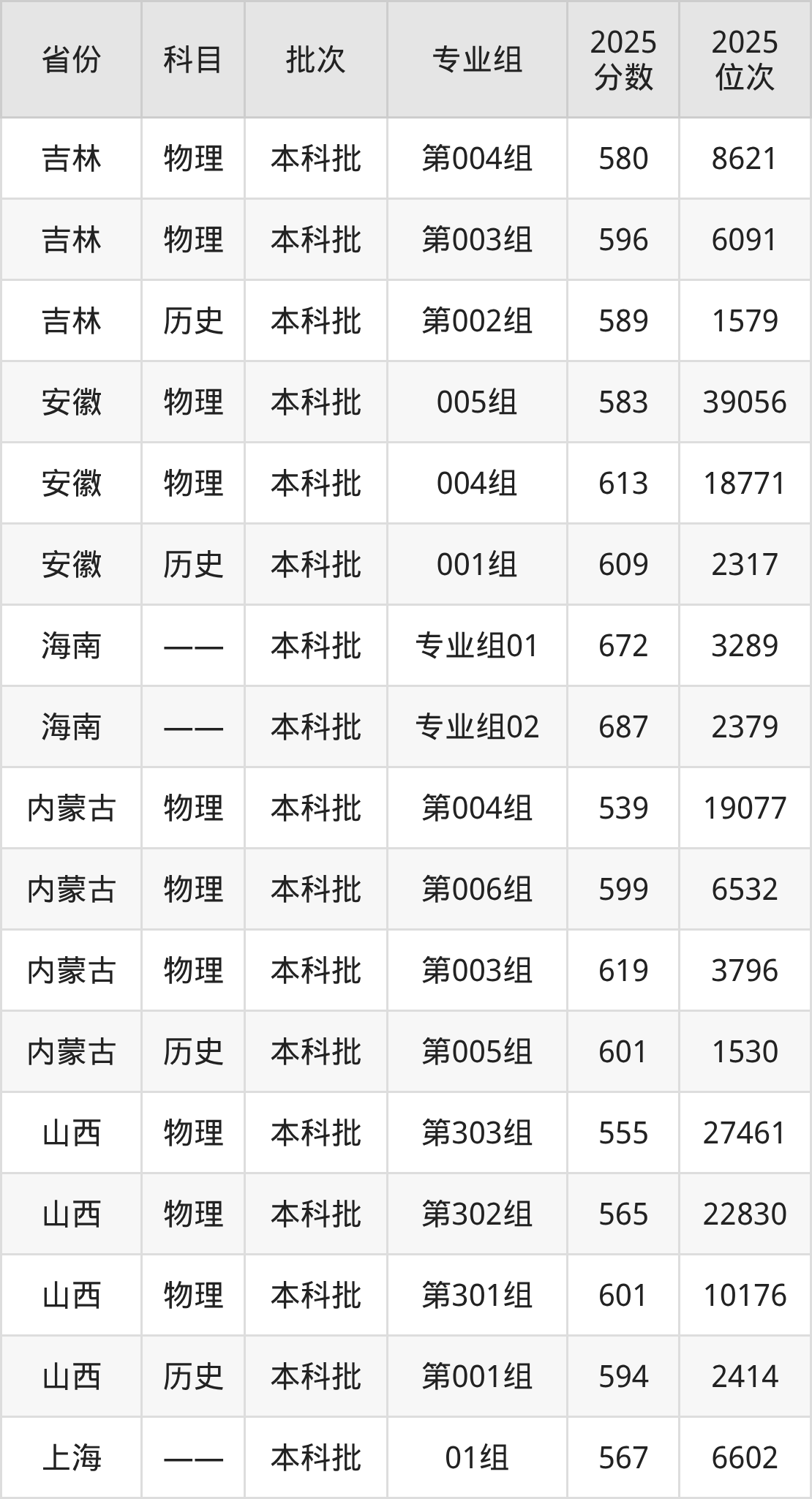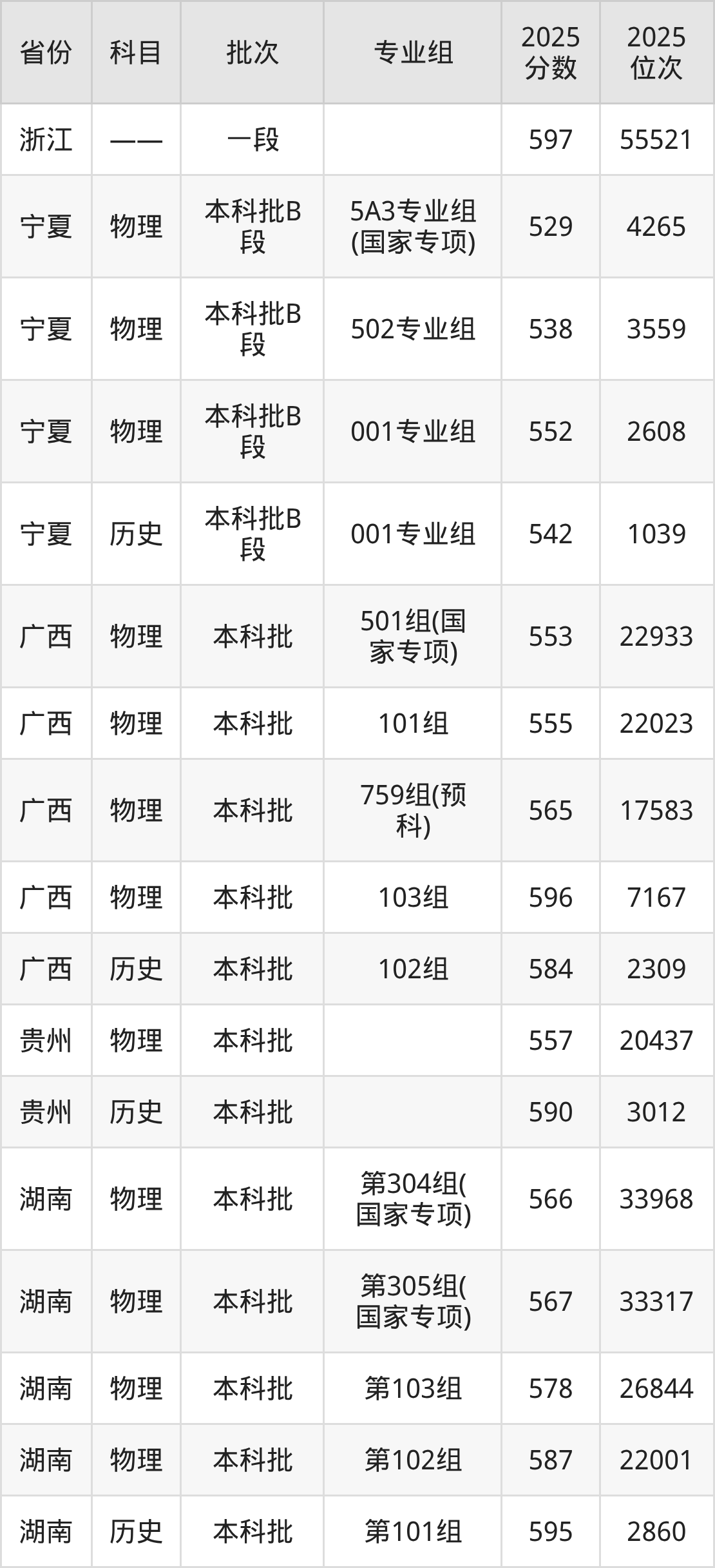 2025年投档录取最低分为598分,录取最低位次为2173名。