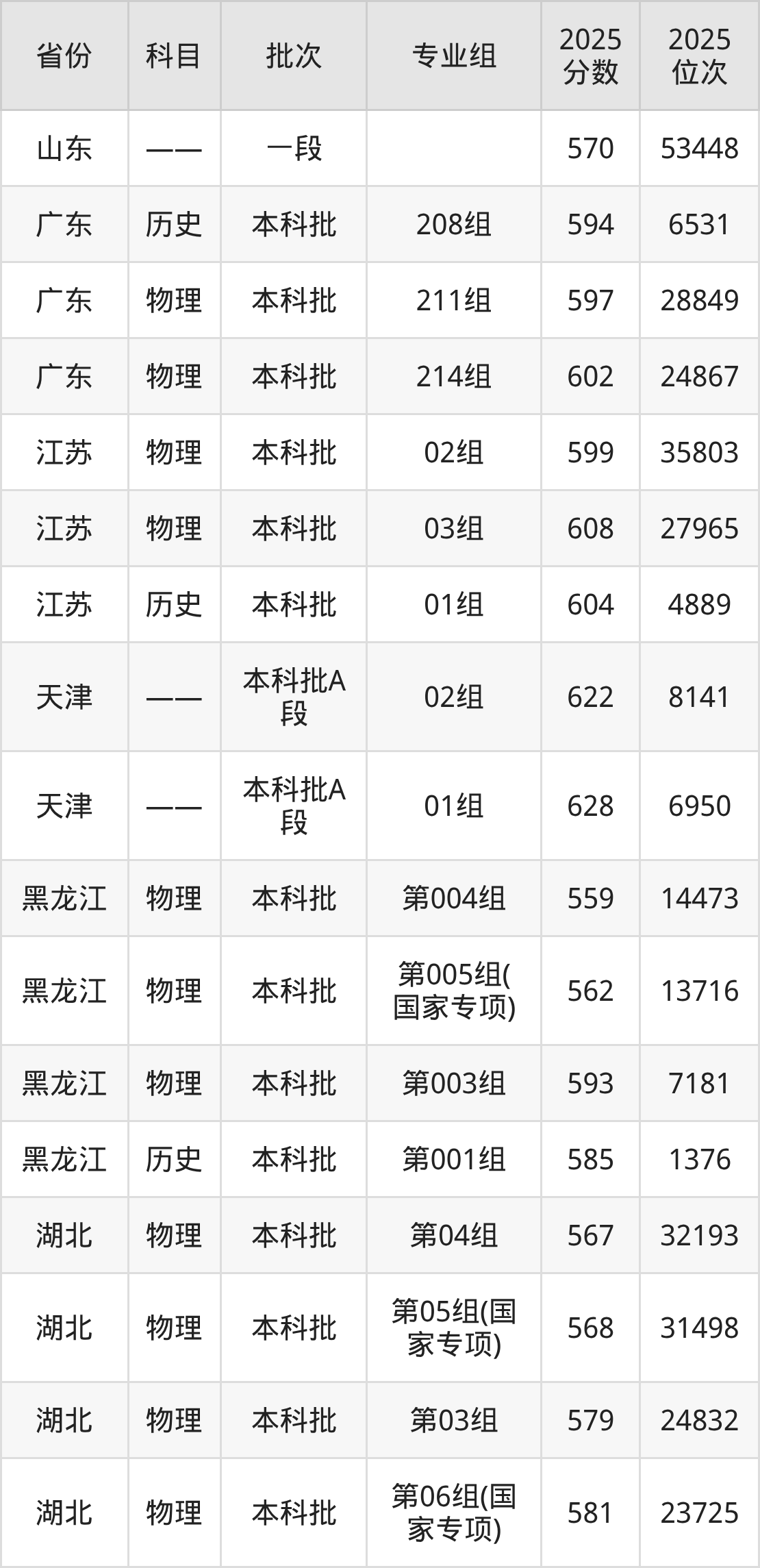 2025年投档录取最低分为618分,录取最低位次为2777名。