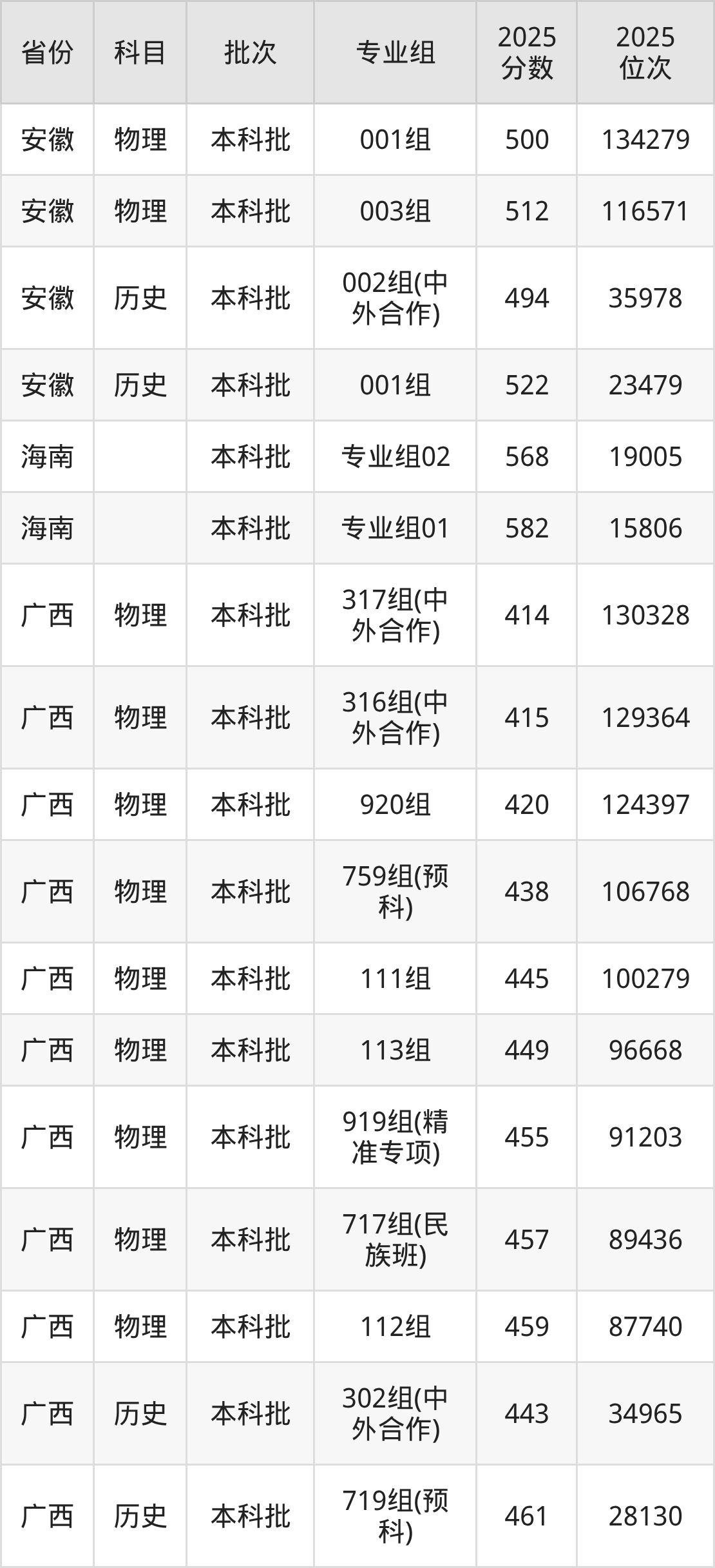 广西财经学院第001组:2025年投档录取最低分为522分,录取最低位次为6068名。