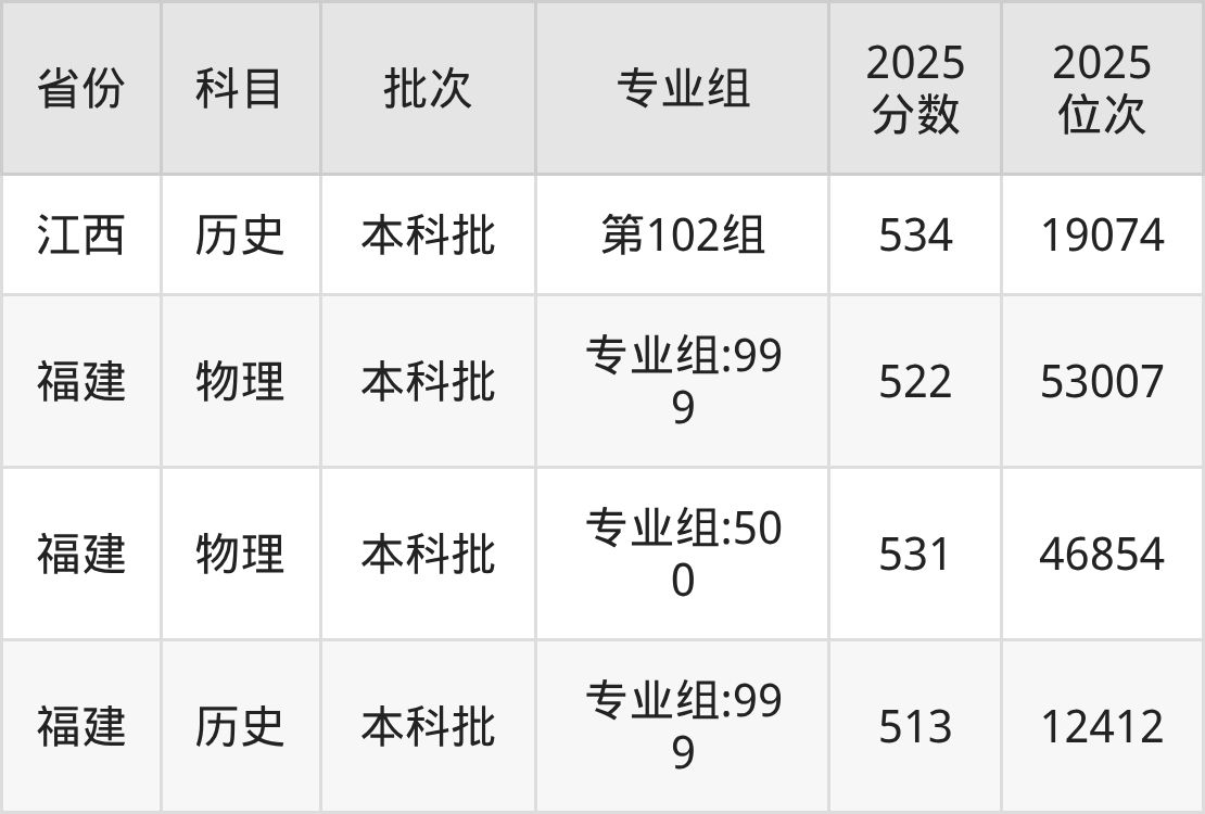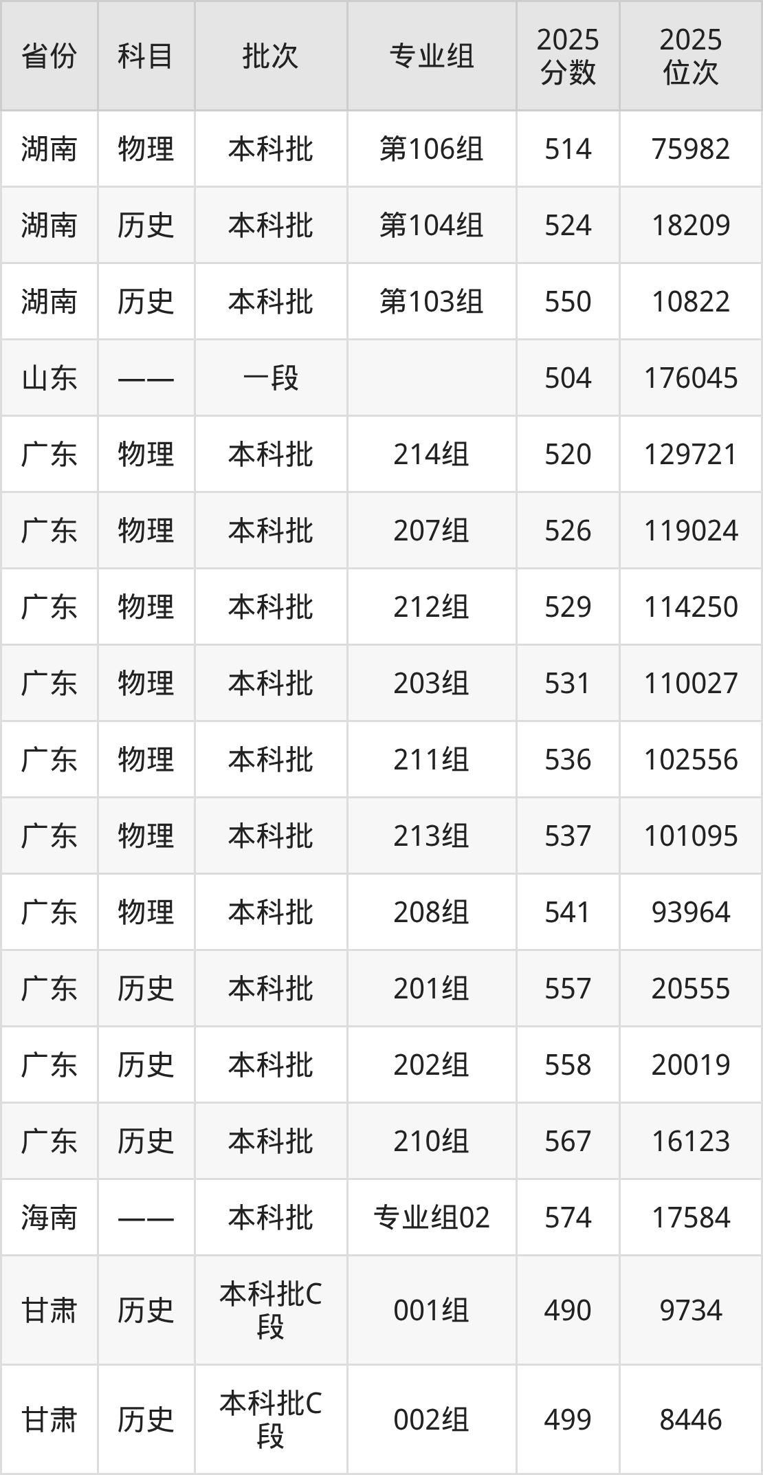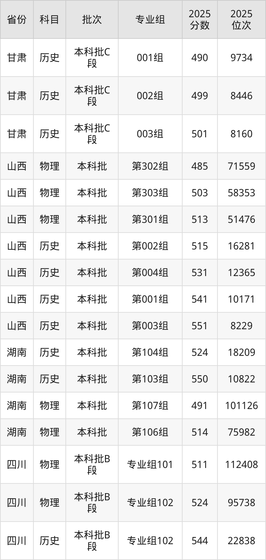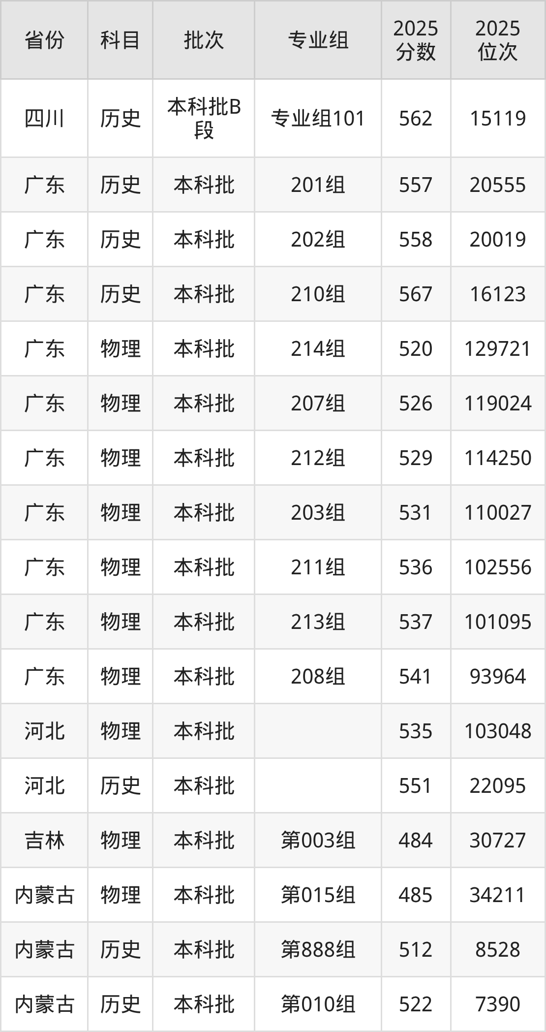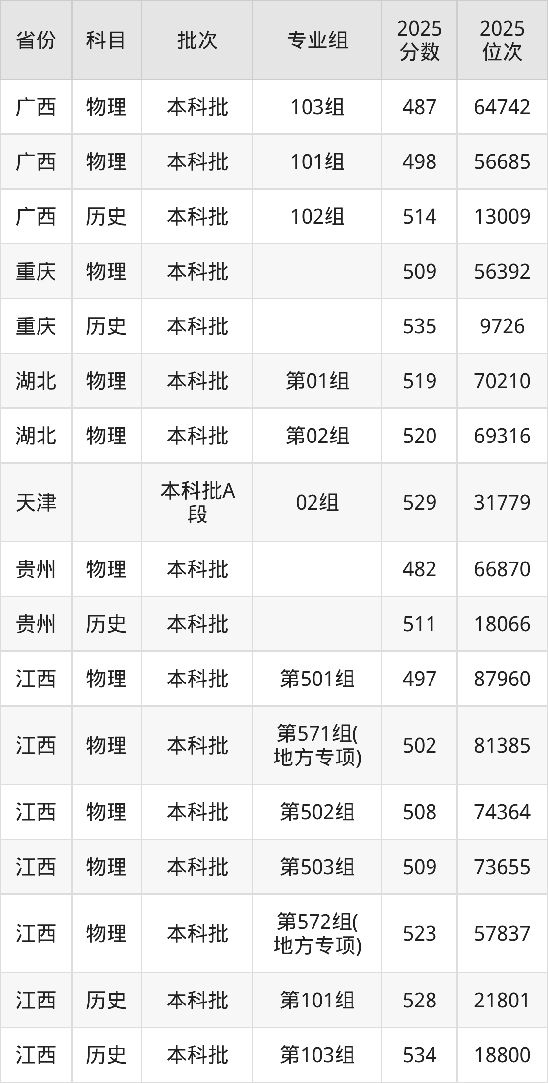 2025年在本科物理类进行招生,各专业组分数线详情如下: