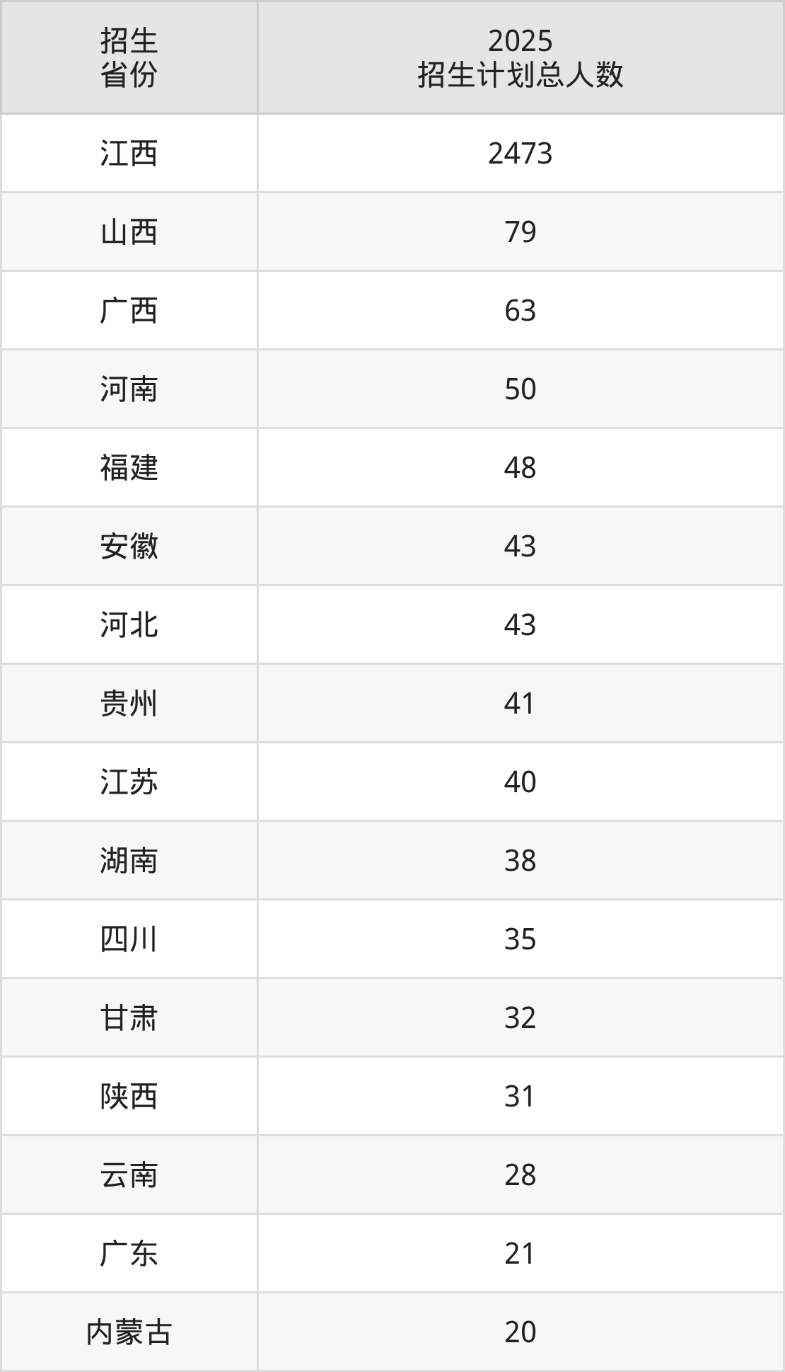 2025年景德镇陶瓷大学面向全国23个省市开展本科招生;招生专业共36个,招生人数共3152人。2025年在江西省招生计划总人数是2473人,其中,景德镇陶瓷大学在江西省招生人数最多的是会计学。景德镇陶瓷大学在各省具体招生人数情况如下表。