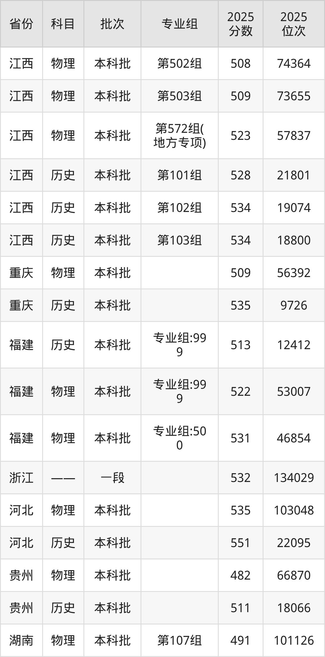 景德镇陶瓷大学第003组:2025年投档录取最低分为551分,录取最低位次为8229名。