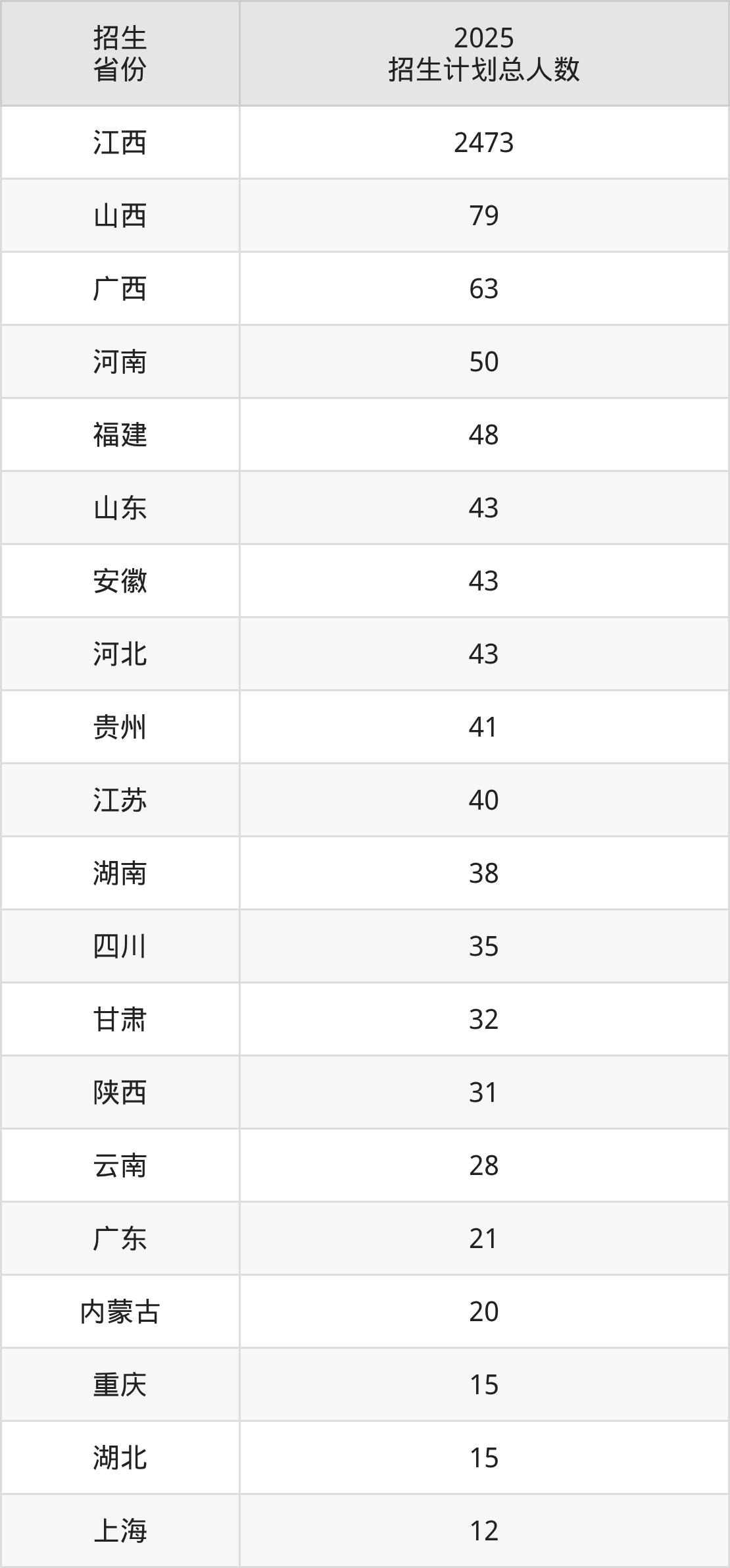 2025年景德镇陶瓷大学面向全国24个省市开展本科招生;招生专业共36个,招生人数共3195人。2025年在江西省招生计划总人数是2473人,其中,景德镇陶瓷大学在江西省招生人数最多的是会计学。景德镇陶瓷大学在各省具体招生人数情况如下表。