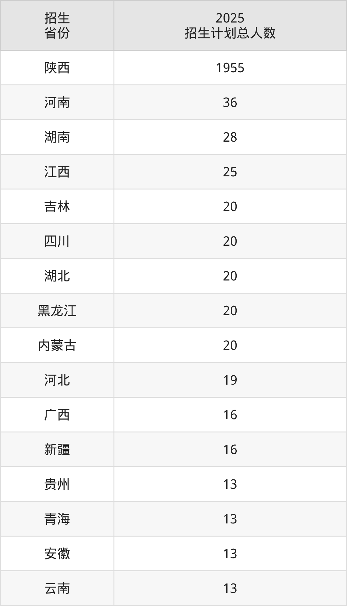 2025年榆林学院面向全国20个省市开展本科招生;招生专业共42个,招生人数共2289人。2025年在陕西省招生计划总人数是1955人,其中,榆林学院在陕西省招生人数最多的是汉语言文学。榆林学院在各省具体招生人数情况如下表。