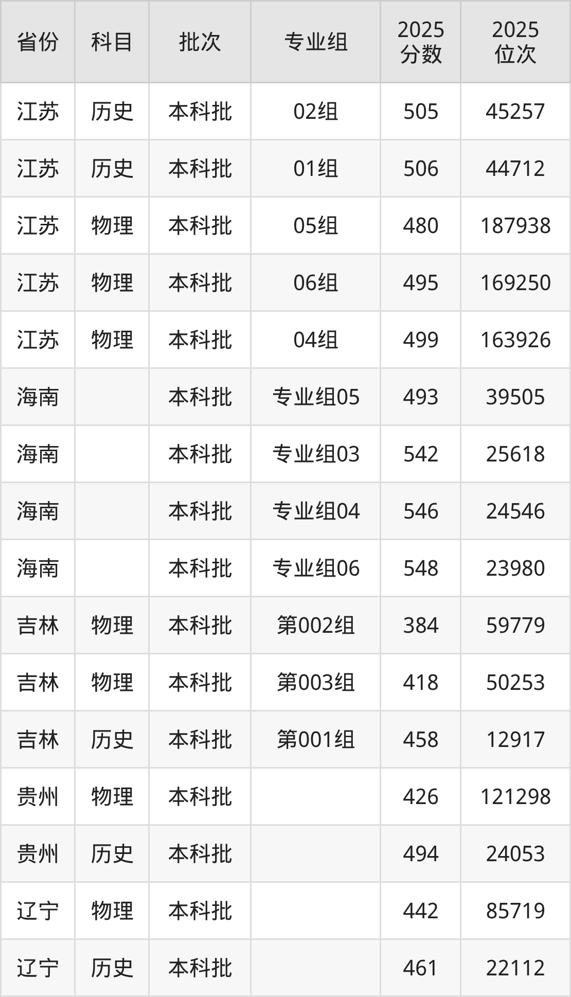 2025年投档录取最低分为490分,录取最低位次为20354名。