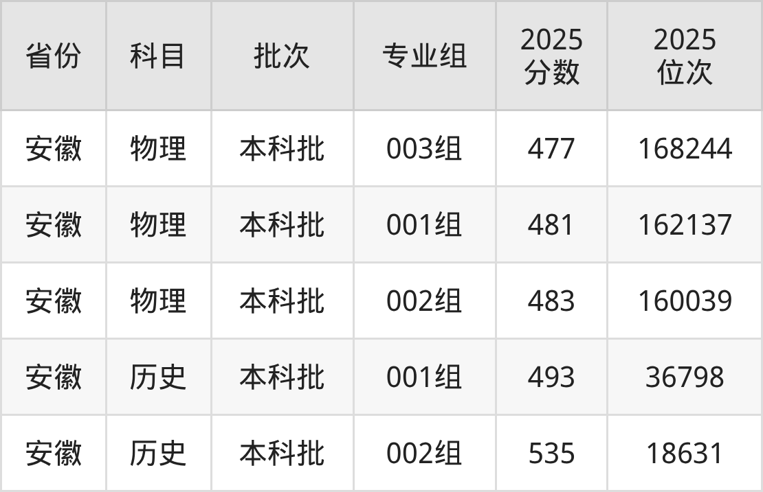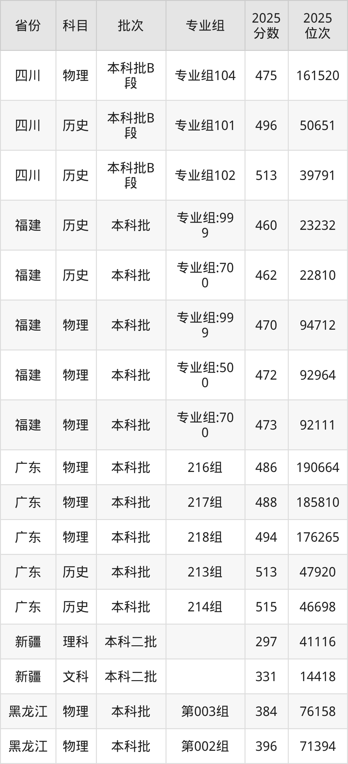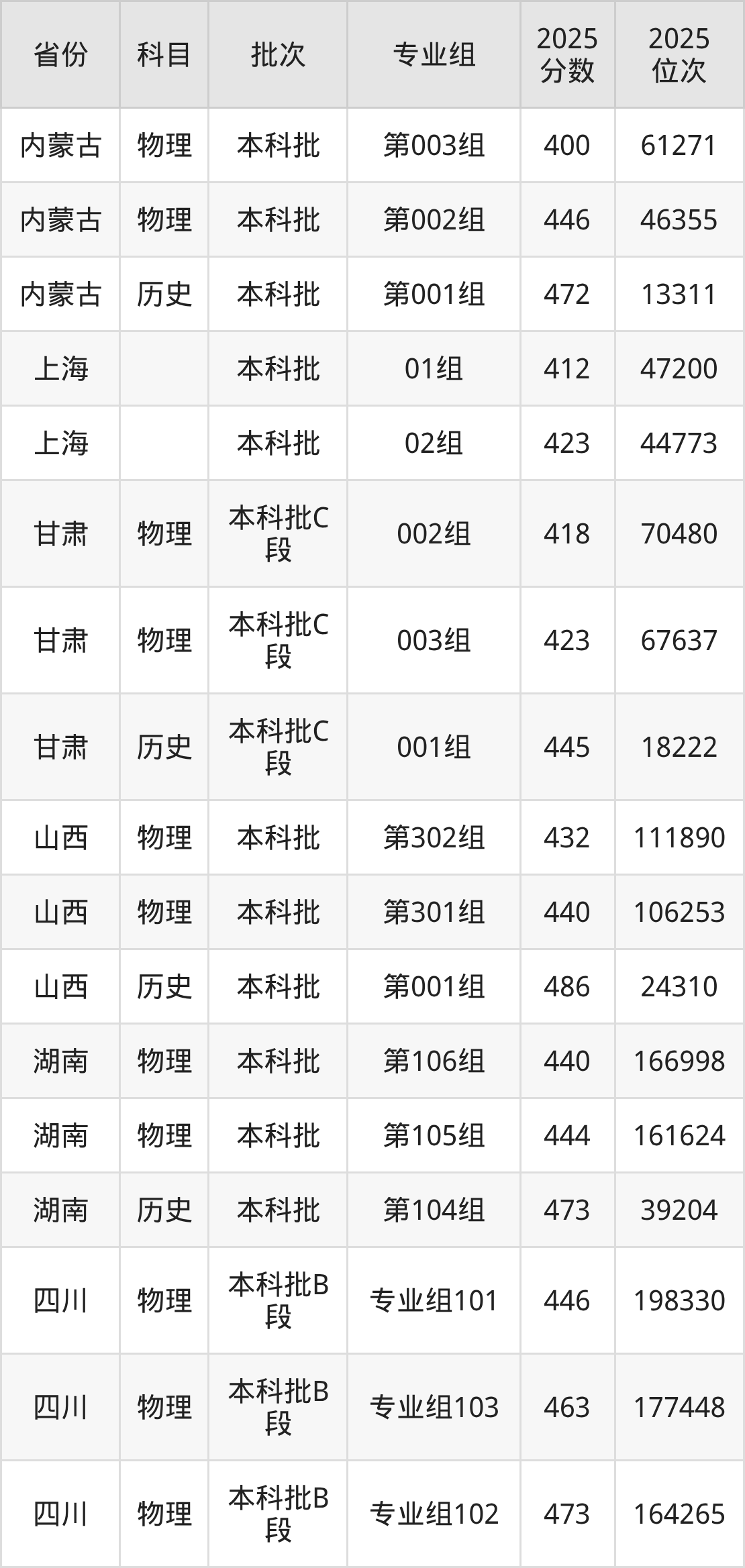 四川大学锦江学院001组:2025年投档录取最低分为481分,录取最低位次为162137名。