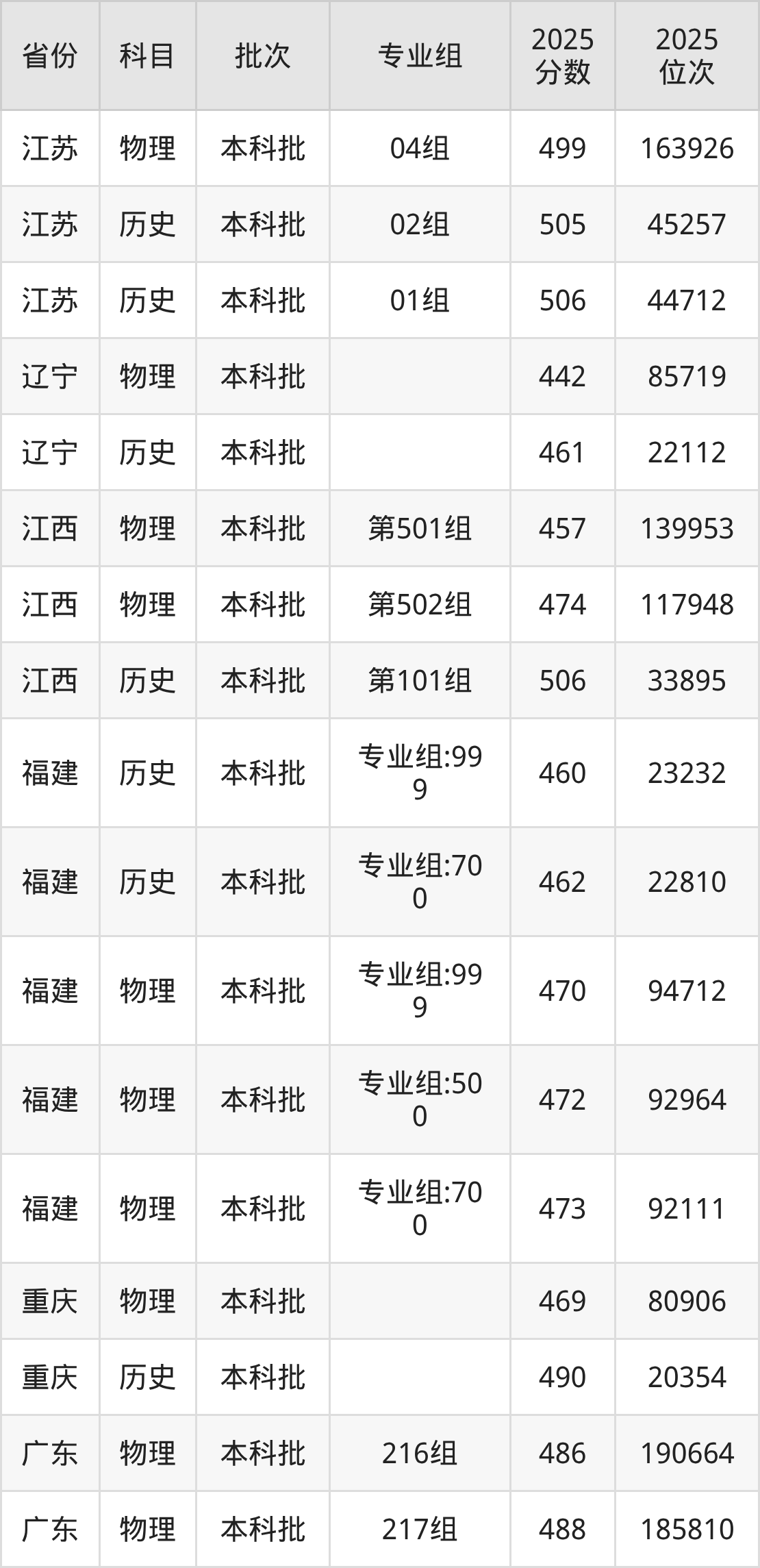 2025年投档录取最低分为461分,录取最低位次为22112名。