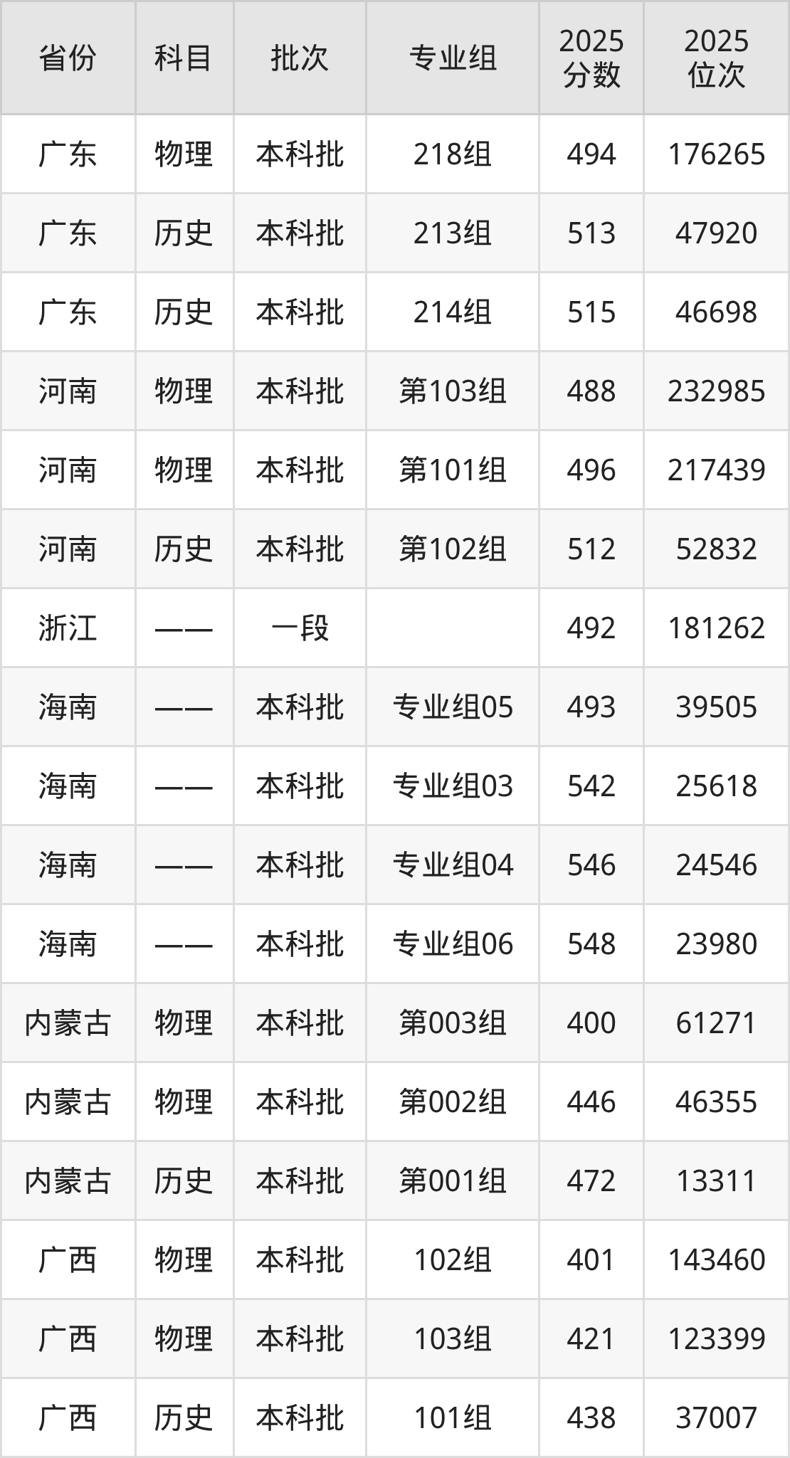 四川大学锦江学院06组:2025年投档录取最低分为495分,录取最低位次为169250名。