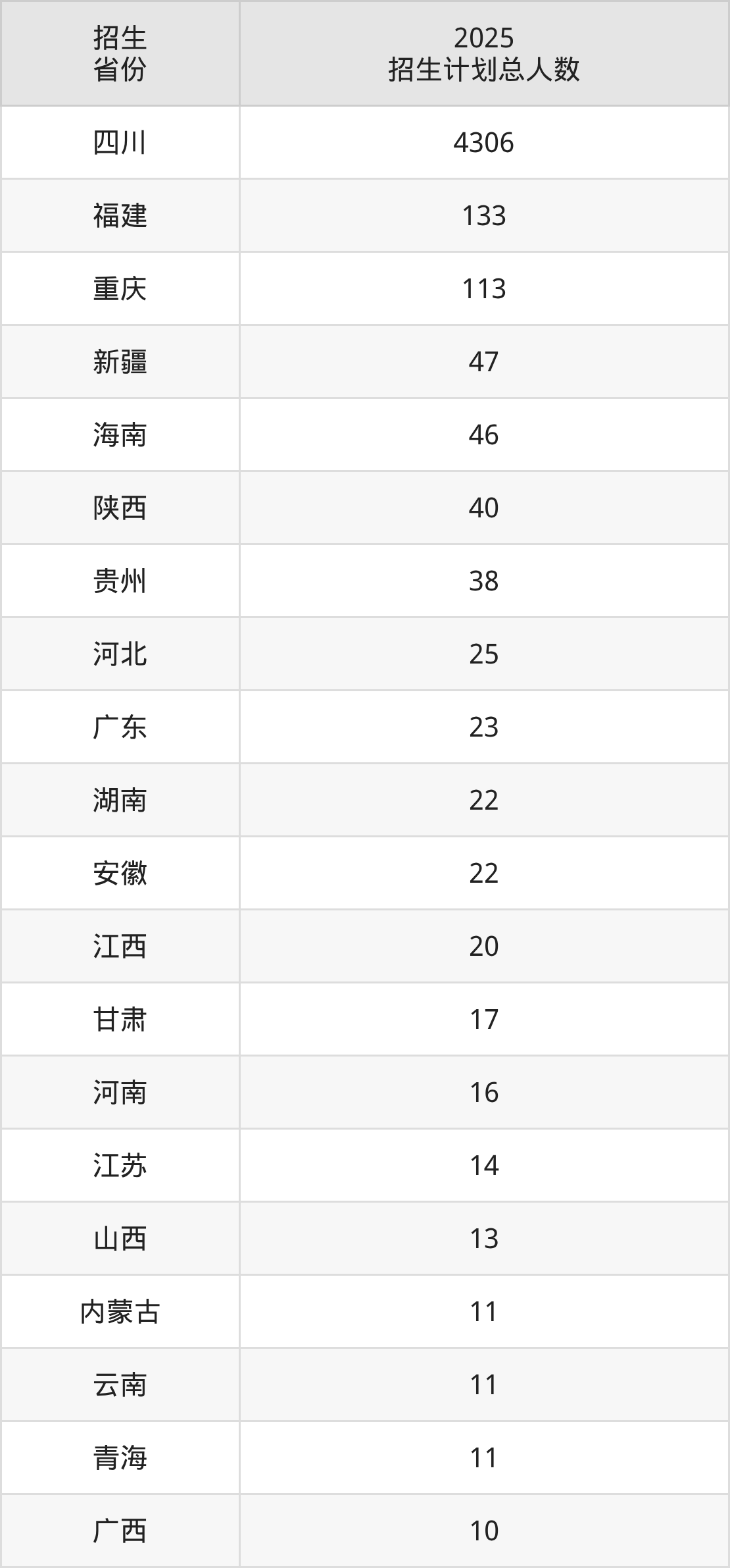 2025年四川大学锦江学院面向全国27个省市开展本科招生;招生专业共32个,招生人数共4981人。2025年在四川省招生计划总人数是4306人,其中,四川大学锦江学院在四川省招生人数最多的是会计学。四川大学锦江学院在各省具体招生人数情况如下表。