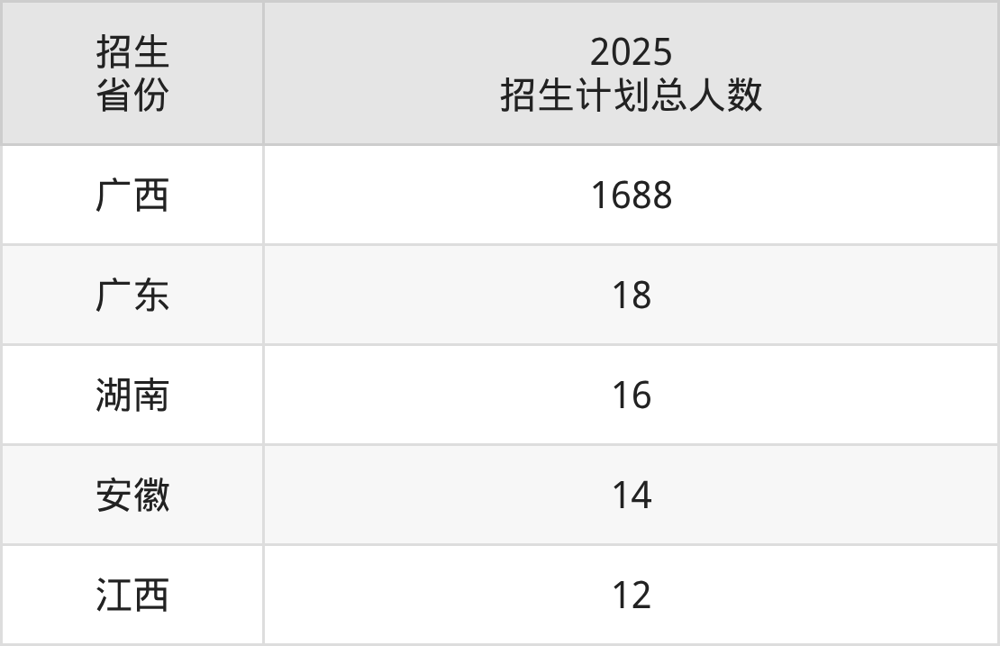 2025年广西质量工程职业技术学院面向全国5个省市开展专科招生;招生专业共17个,招生人数共1748人。2025年在广西壮族自治区招生计划总人数是1688人,其中,广西质量工程职业技术学院在广西壮族自治区招生人数最多的是计算机应用技术。广西质量工程职业技术学院在各省具体招生人数情况如下表。