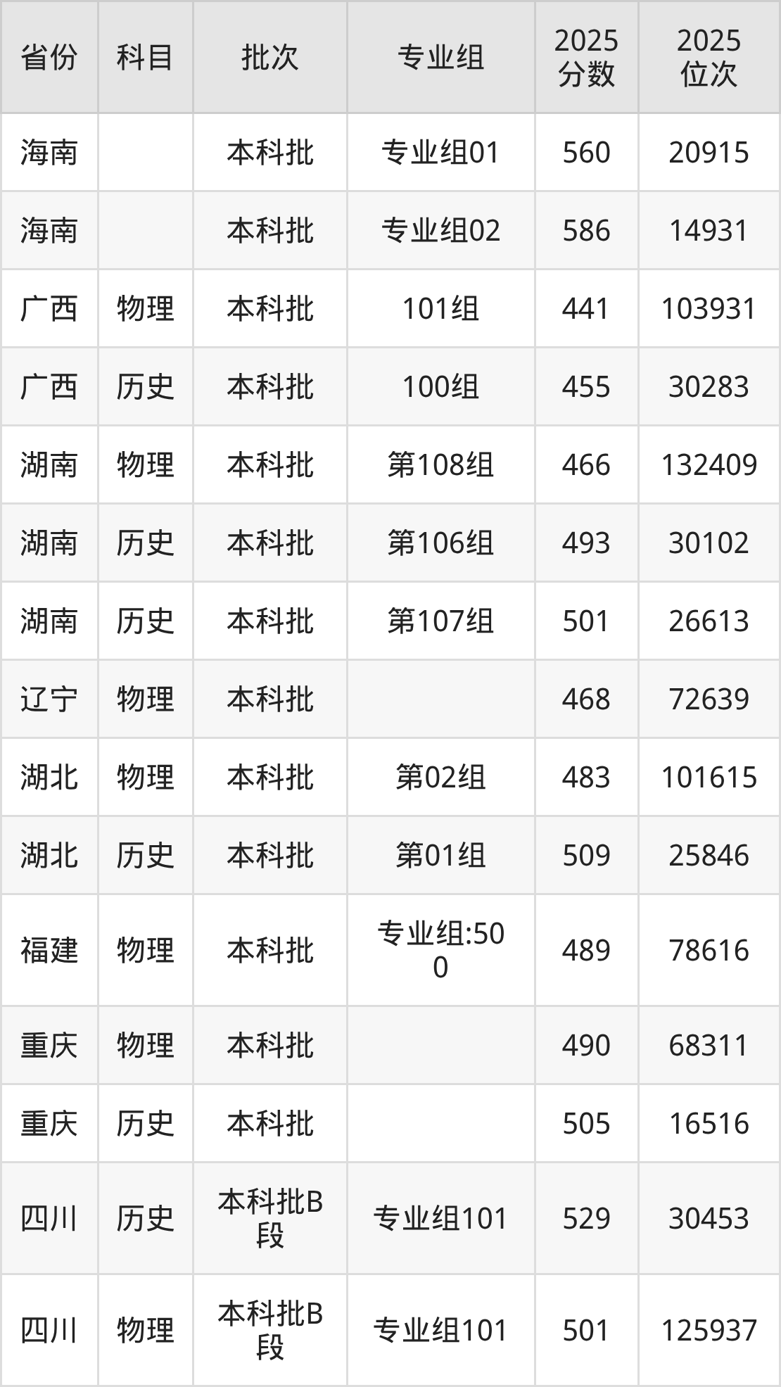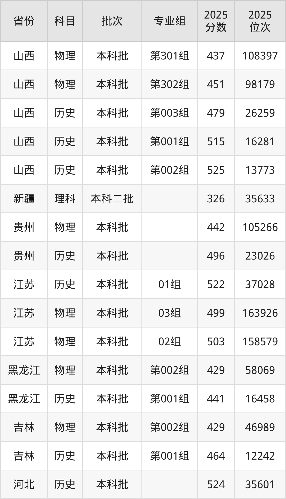2025年在本科物理类进行招生,各专业组分数线详情如下: