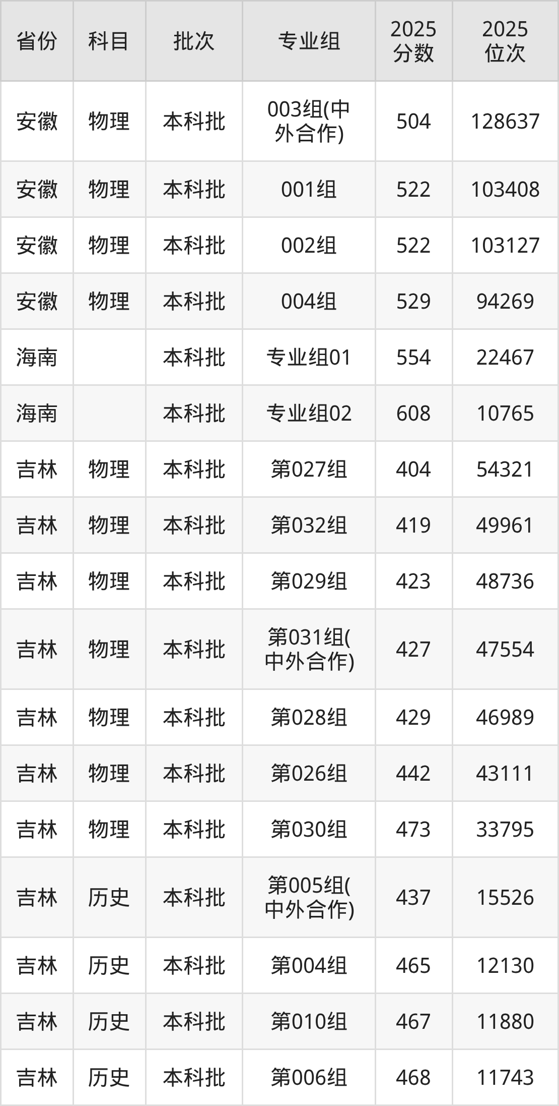 长春师范大学第003组(中外合作):2025年投档录取最低分为435分,录取最低位次为17478名。