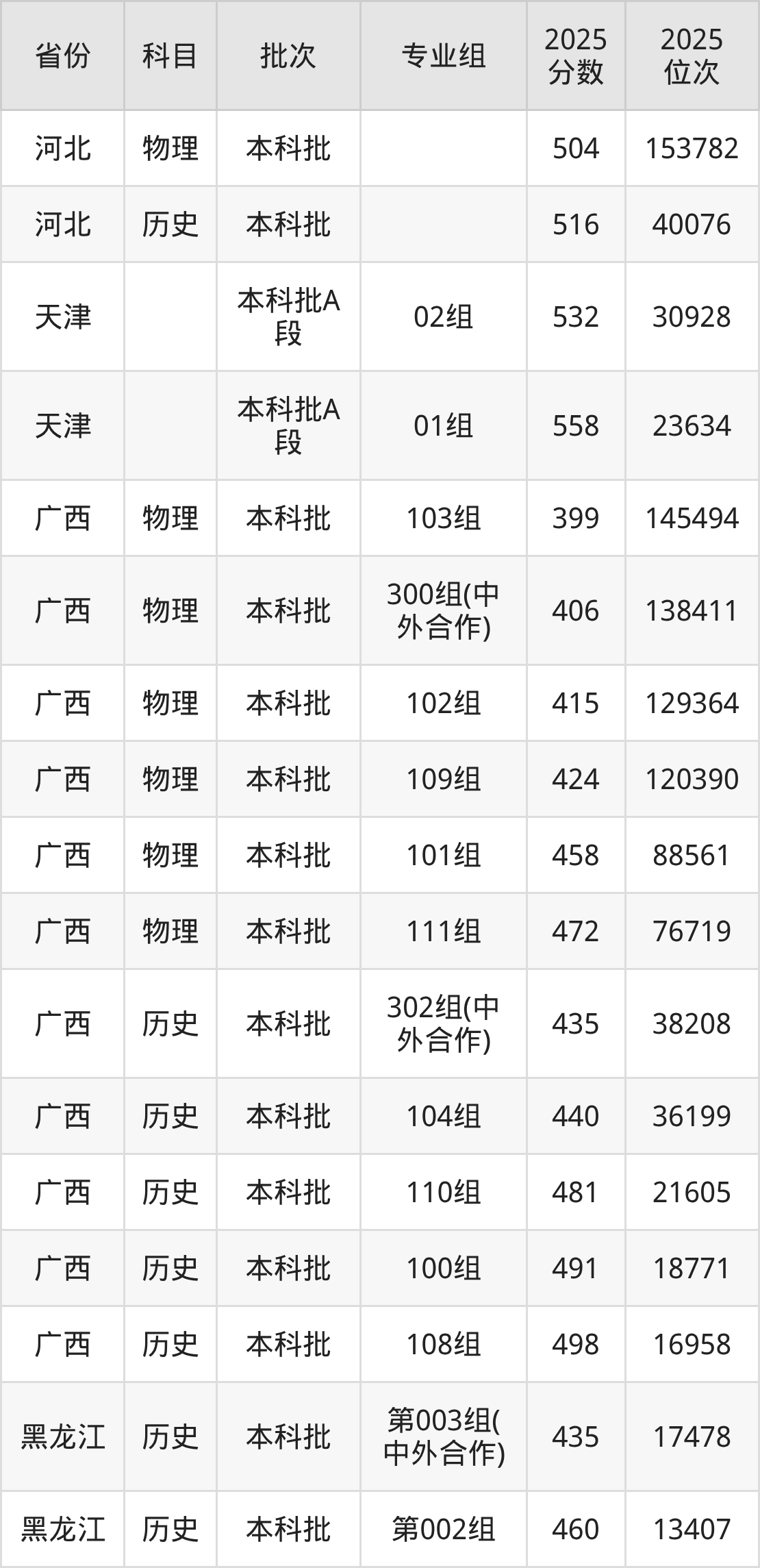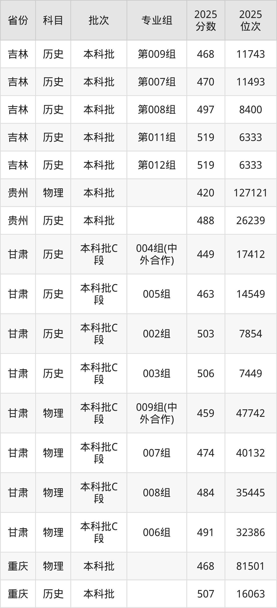 长春师范大学(02)(中外合办):2025年投档录取最低分为465分。