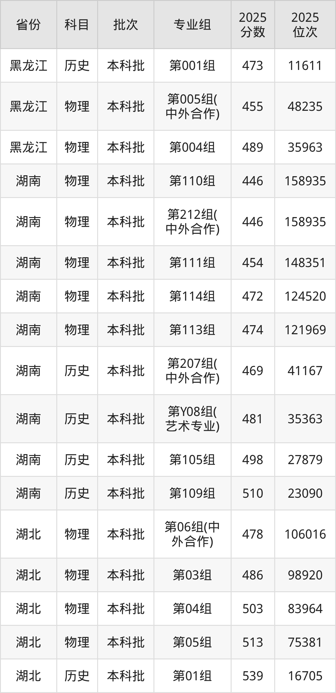 长春师范大学第207组(中外合作办学或国际项目):2025年投档录取最低分为469分,录取最低位次为41167名。