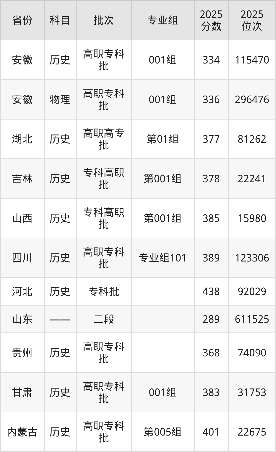 山东传媒职业学院001组:2025年投档录取最低分为334分,录取最低位次为115470名。
