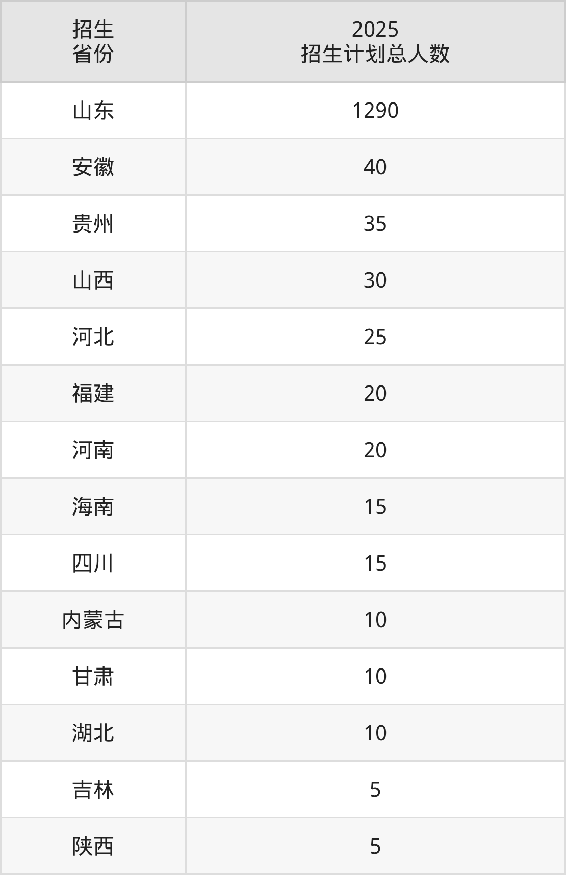 2025年山东传媒职业学院面向全国14个省市开展专科招生;招生专业共25个,招生人数共1530人。2025年在山东省招生计划总人数是1290人,其中,山东传媒职业学院在山东省招生人数最多的是新闻采编与制作。山东传媒职业学院在各省具体招生人数情况如下表。