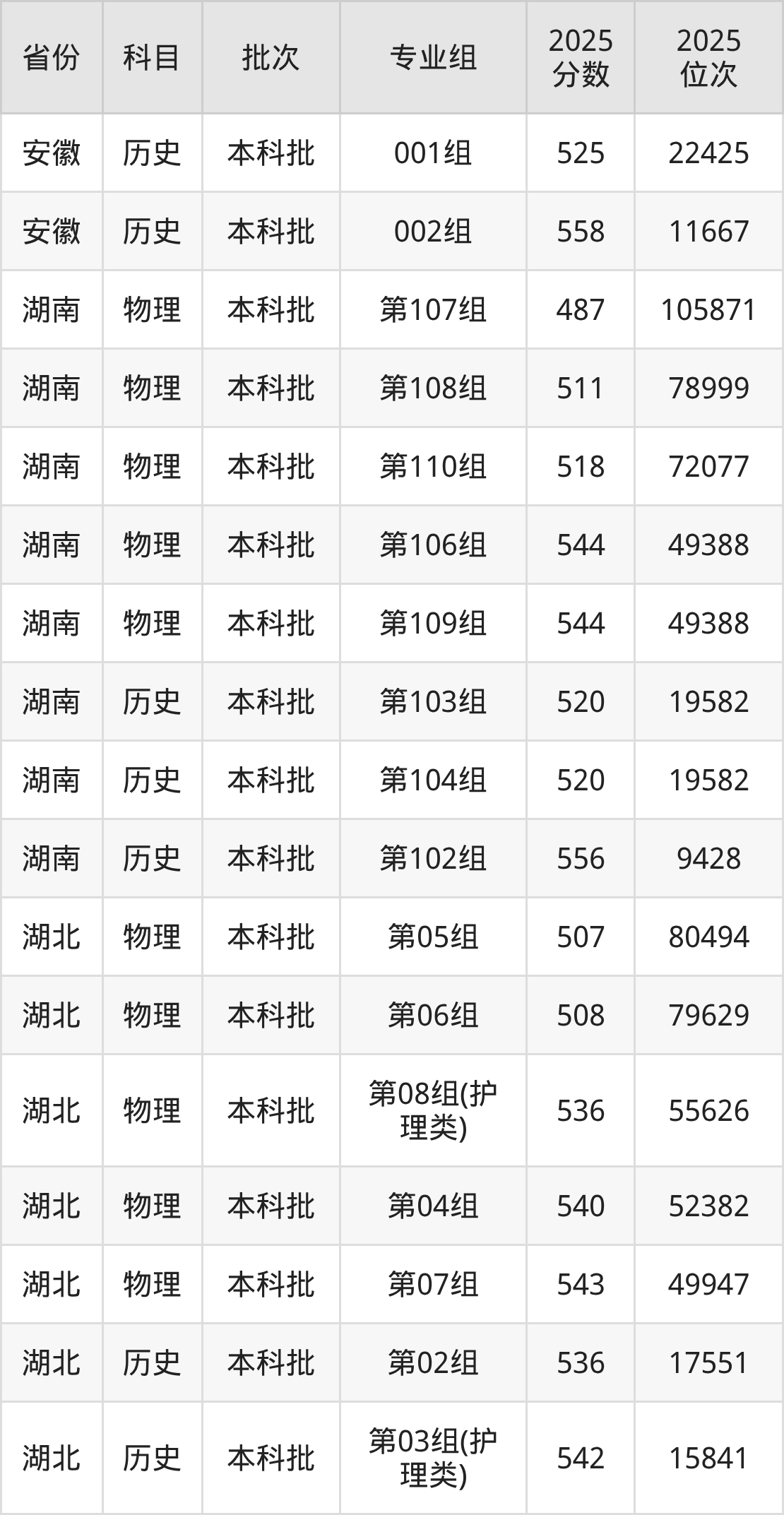 普通类本科历史类最低543分,本科物理类最低525分