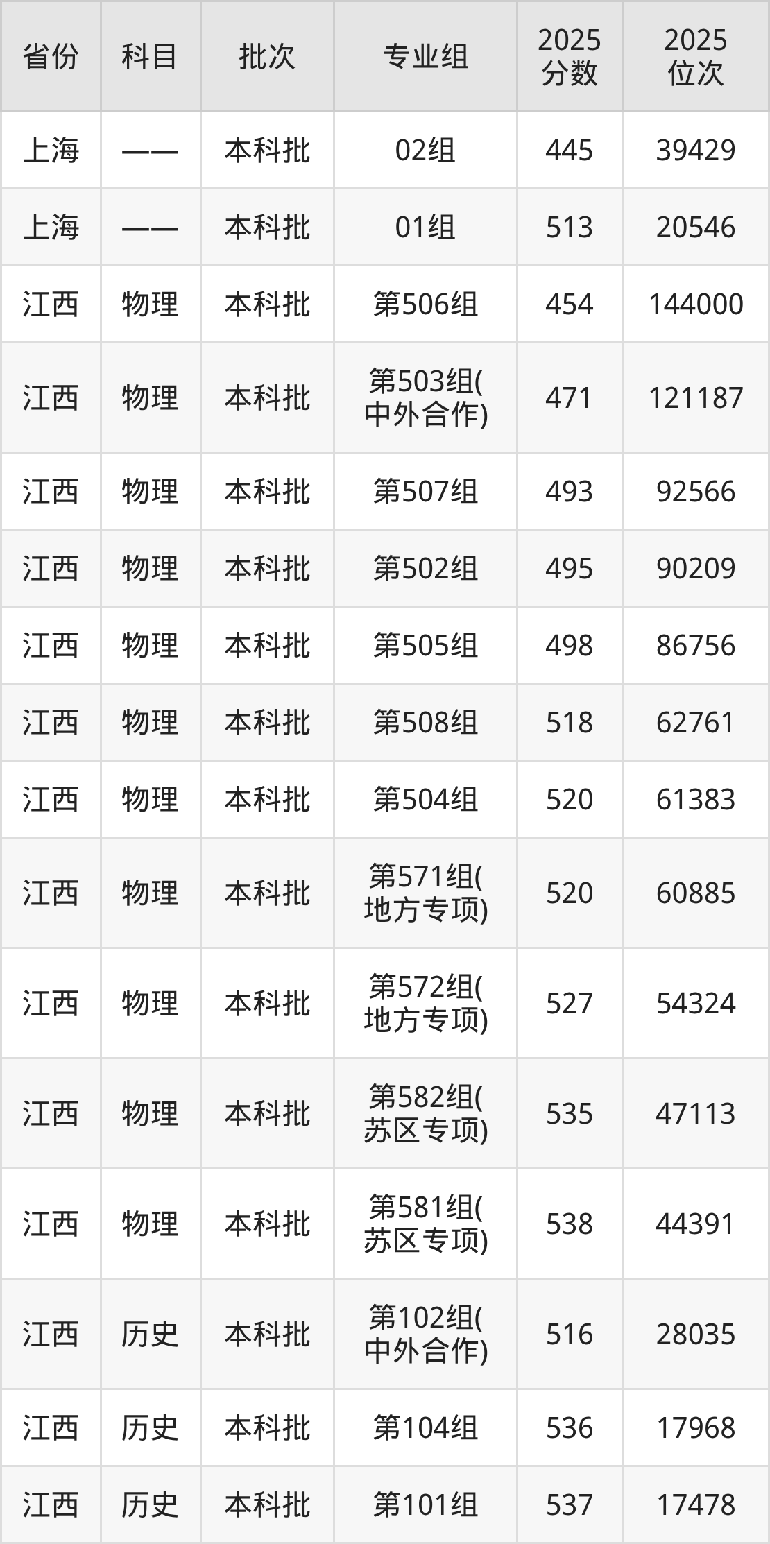 江西中医药大学第05组:2025年投档录取最低分为507分,录取最低位次为80494名。