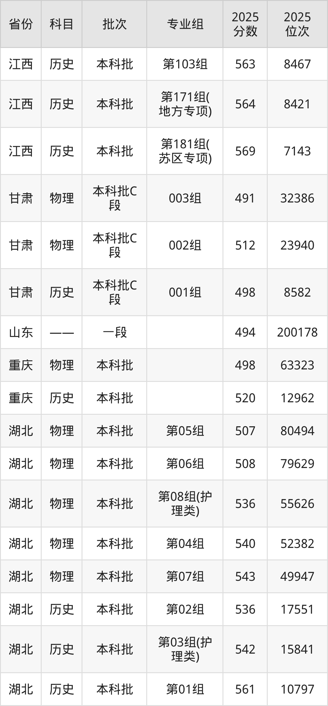 江西中医药大学第103组:2025年投档录取最低分为563分,录取最低位次为8467名。