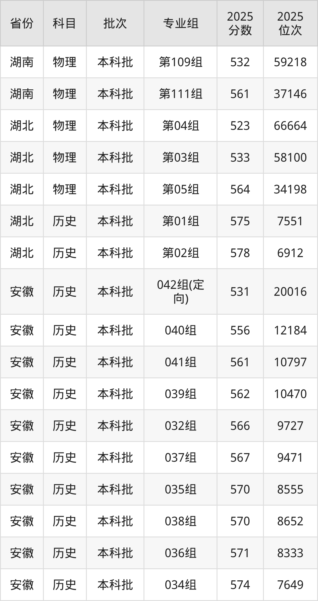 下面是2025年安徽师范大学全国录取分数线一览表,请查阅。