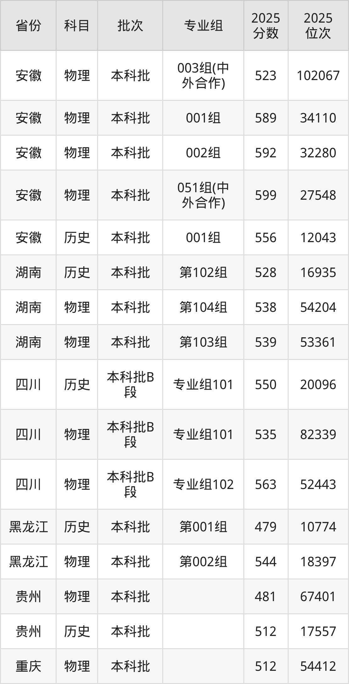 软件工程(中外合作办学):2025年投档录取最低分为552分。
