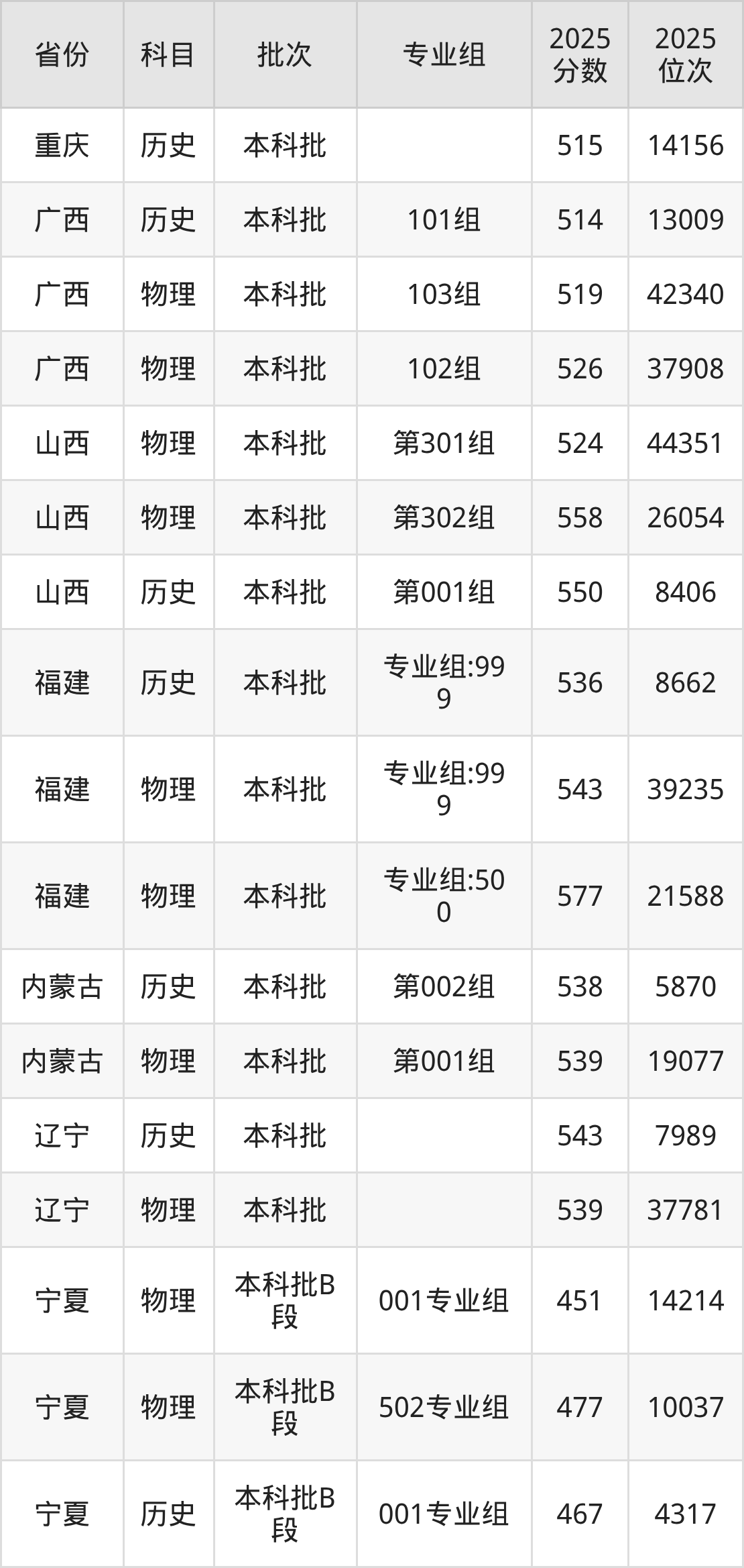 2025年投档录取最低分为515分,录取最低位次为14156名。