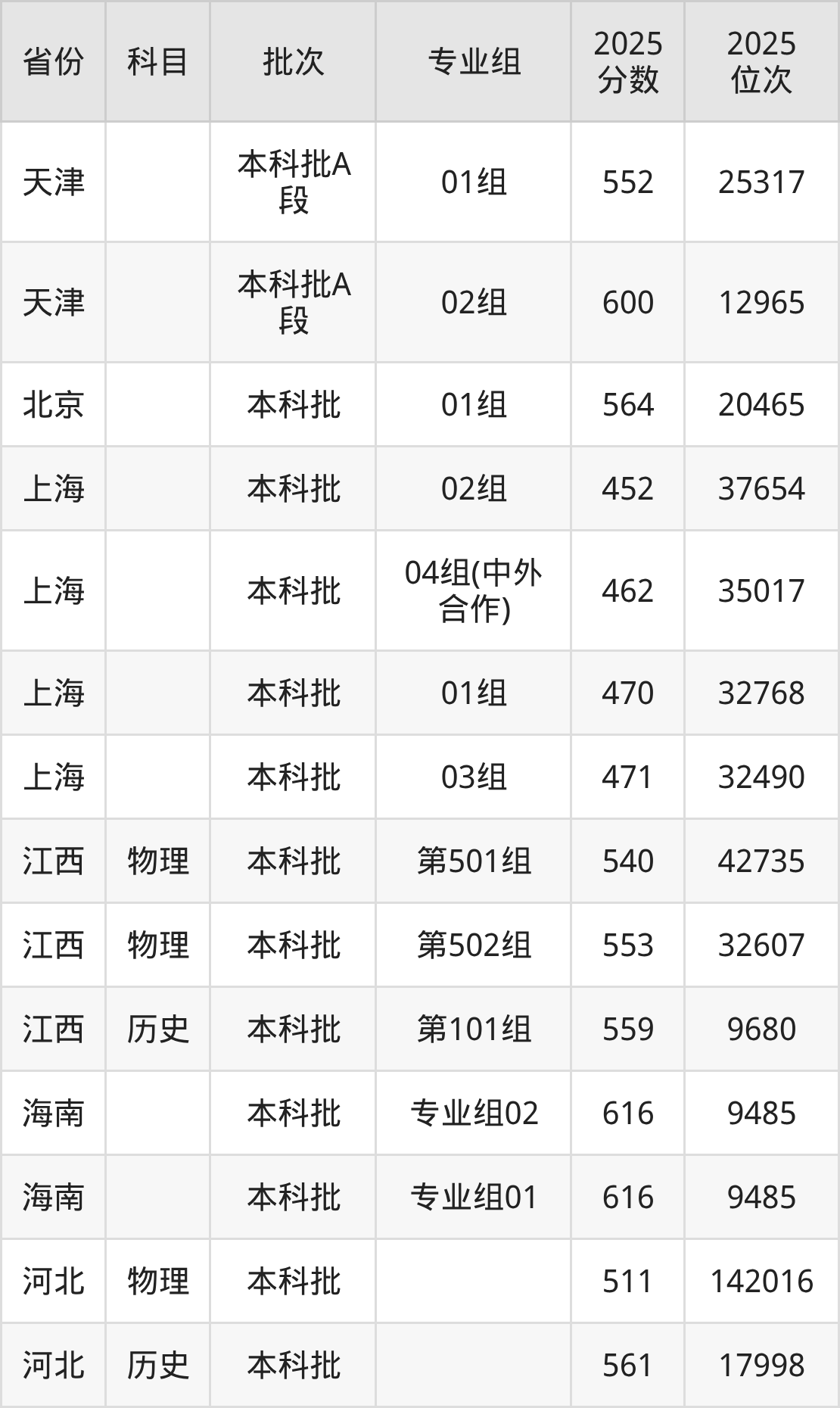 2025年投档录取最低分为539分,录取最低位次为37781名。