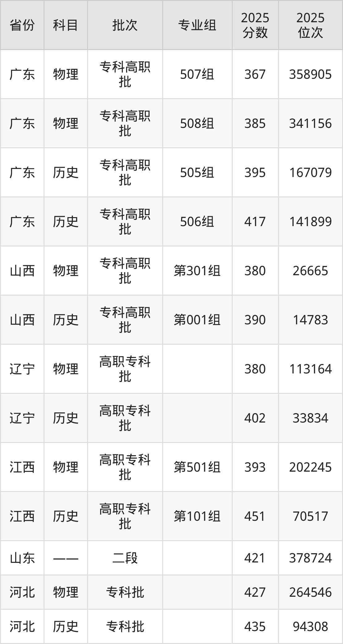 石家庄信息工程职业学院第001组:2025年投档录取最低分为380分,录取最低位次为27950名。