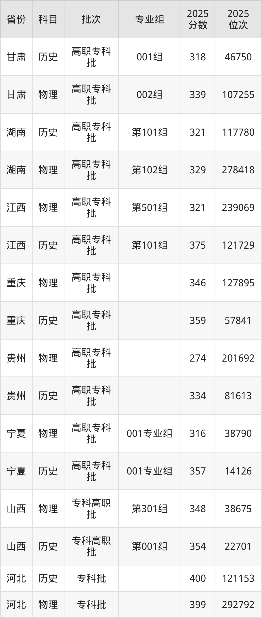 铜川职业技术学院002专业组:2025年投档录取最低分为339分,录取最低位次为107255名。