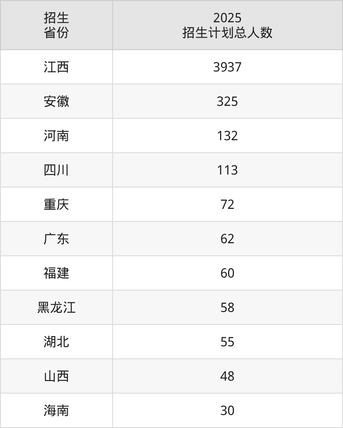 2025年南昌职业大学面向全国11个省市开展本科招生;招生专业共24个,招生人数共4182人。2025年在江西省招生计划总人数是3937人,其中,南昌职业大学在江西省招生人数最多的是软件工程技术。南昌职业大学在各省具体招生人数情况如下表。