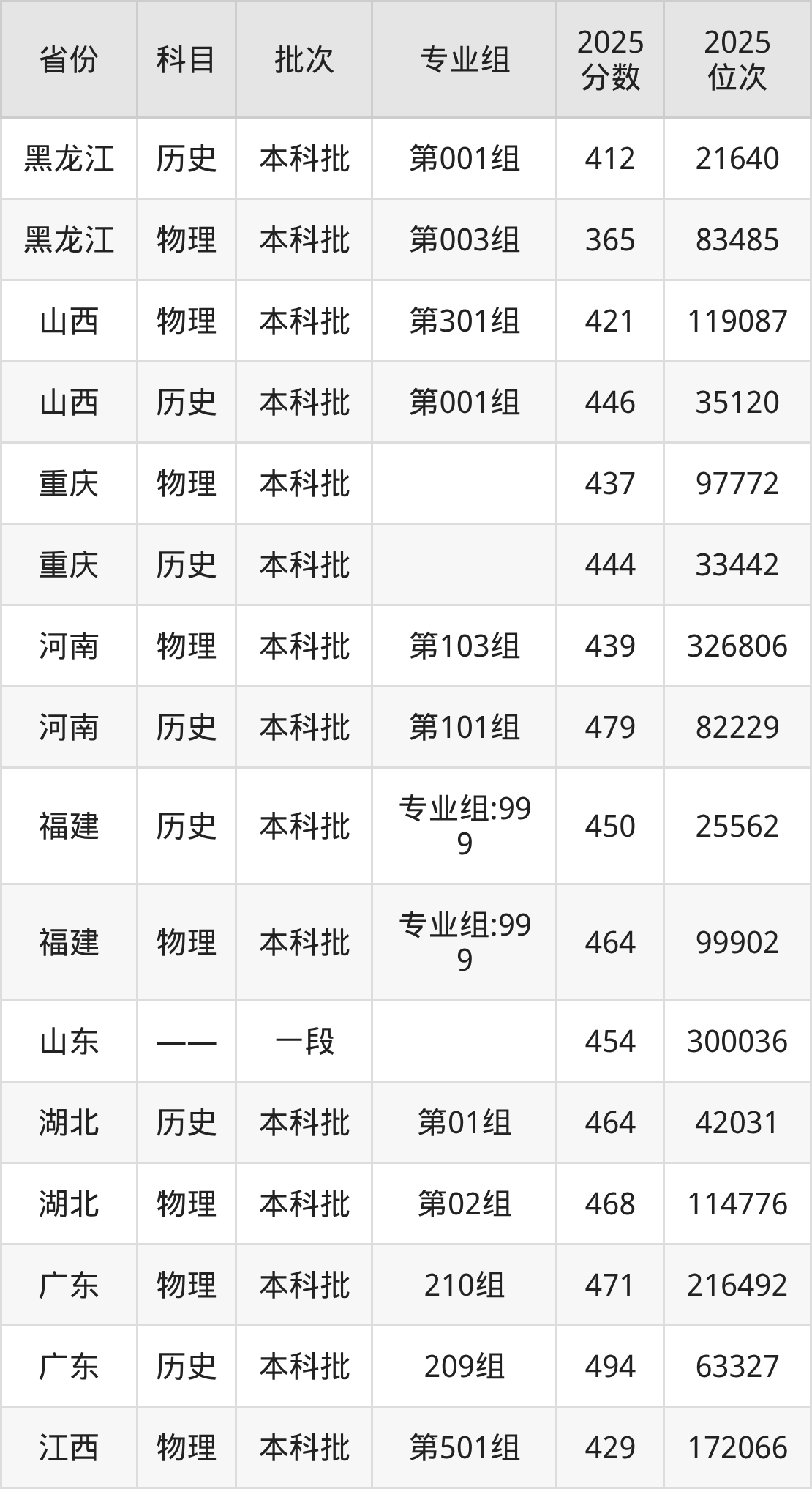 2025年南昌职业大学全国录取分数线是365分到529分,录取最低在黑龙江物理类(第003组)、录取最高在海南(专业组04)。各省各专业组最低分具有差异,详情如下: