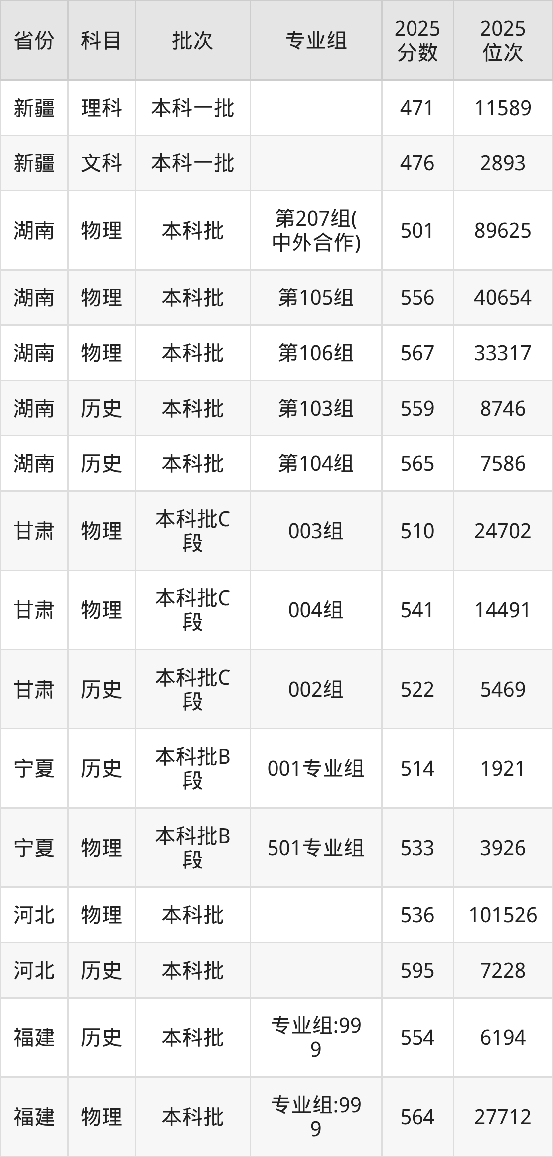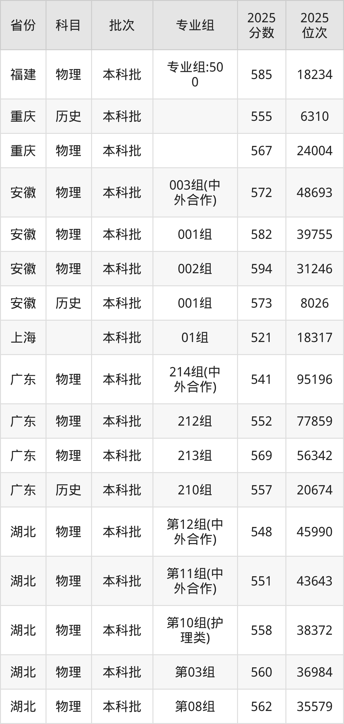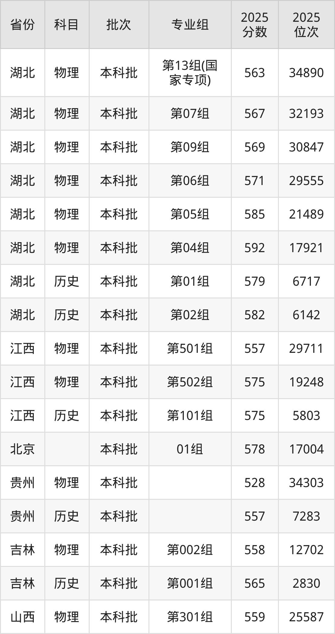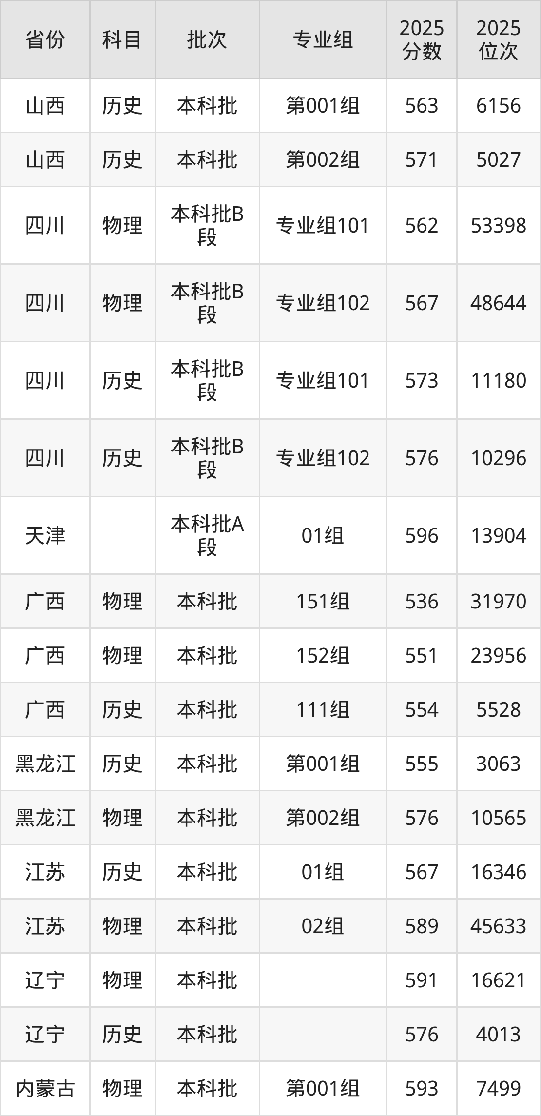 2025年投档录取最低分为557分,录取最低位次为7283名。