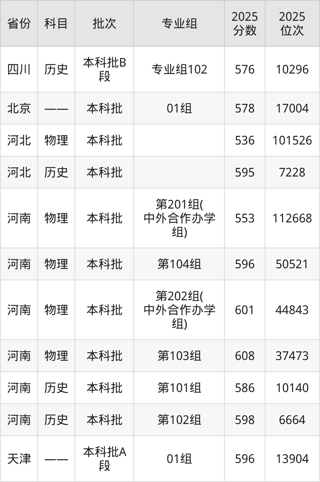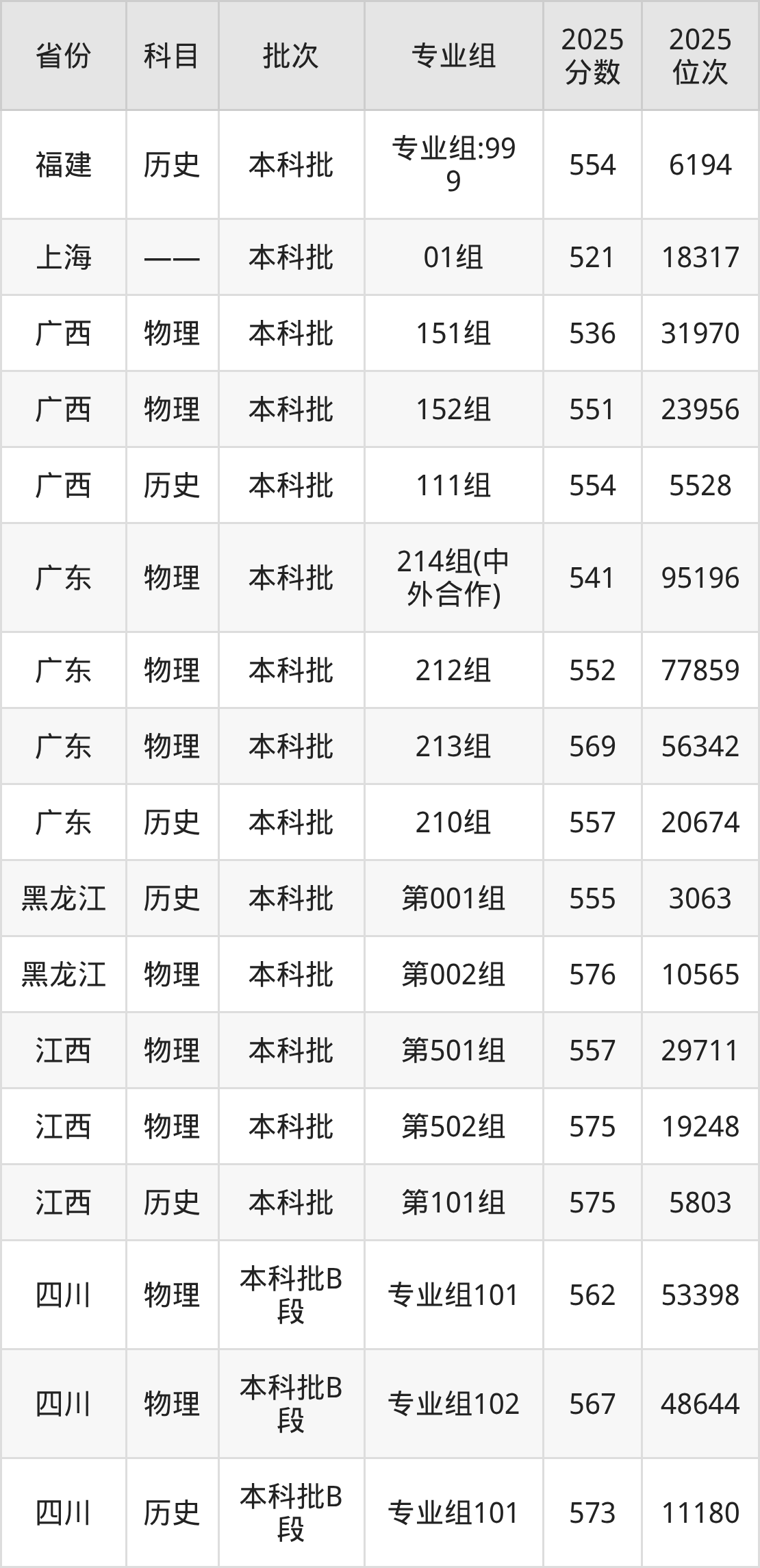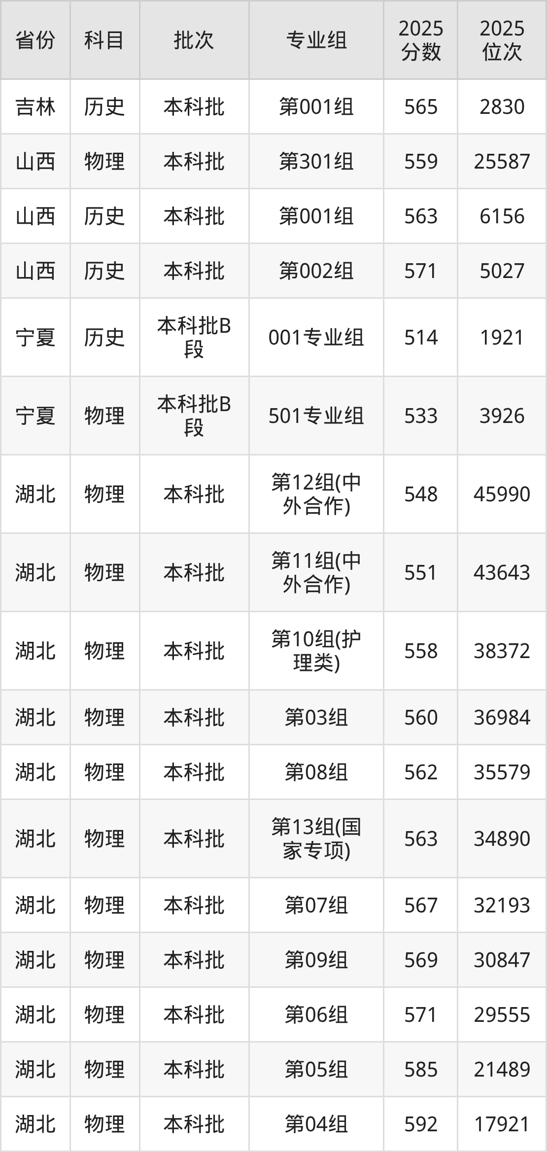 普通类本科历史类最低555分,本科物理类最低576分