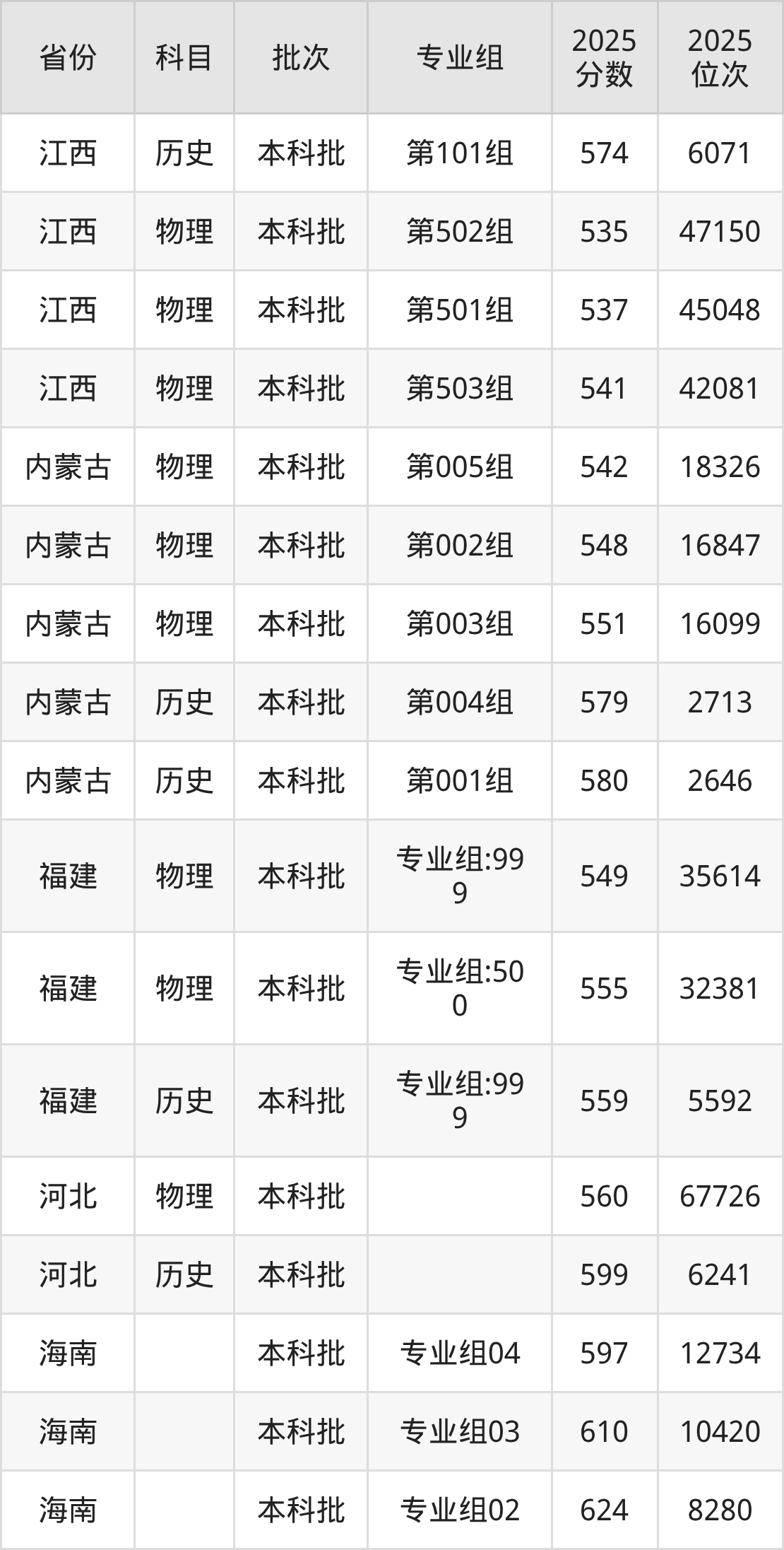2025年投档录取最低分为507分,录取最低位次为1722名。
