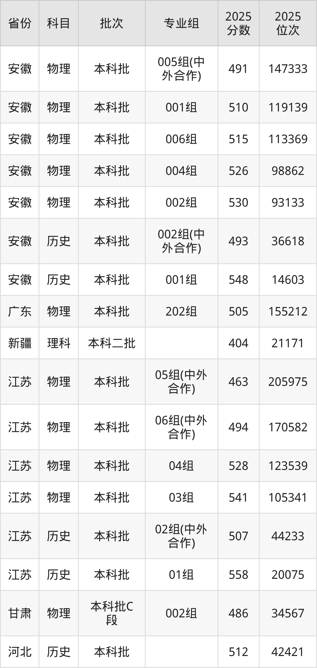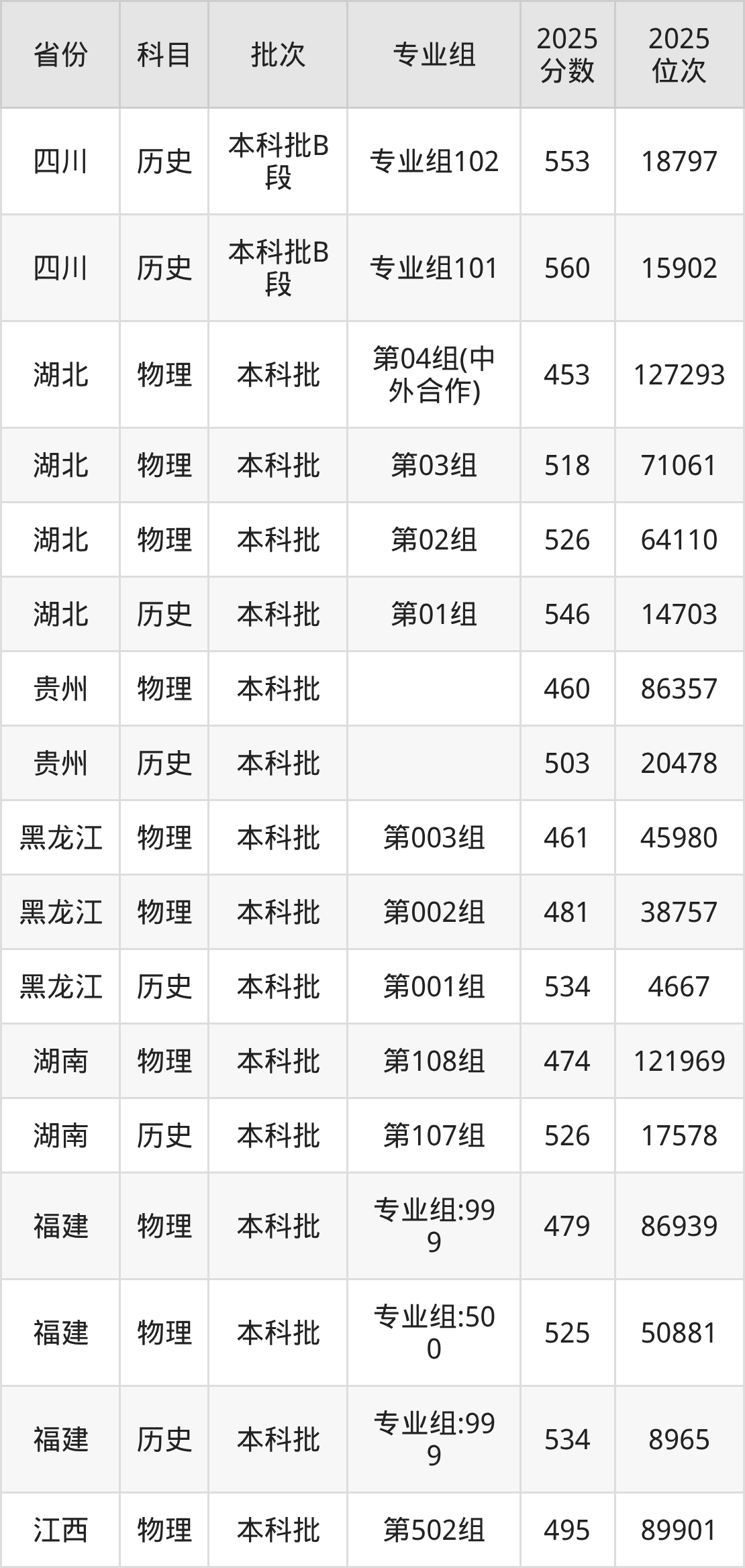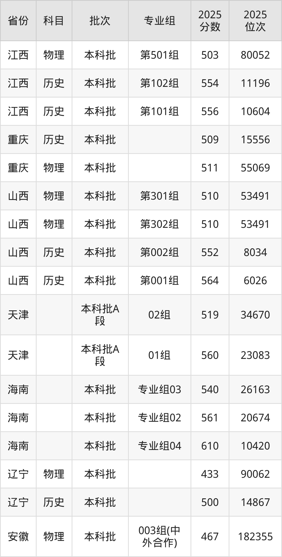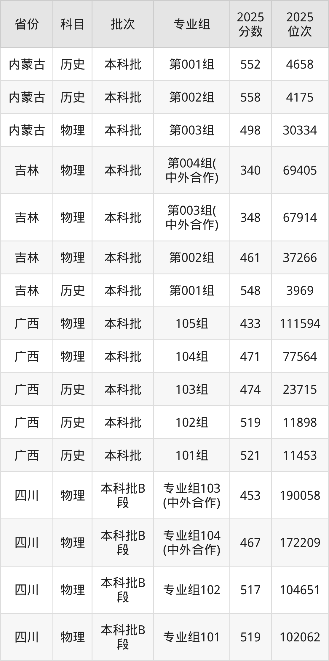 2025年在本科物理类进行招生,各专业组分数线详情如下: