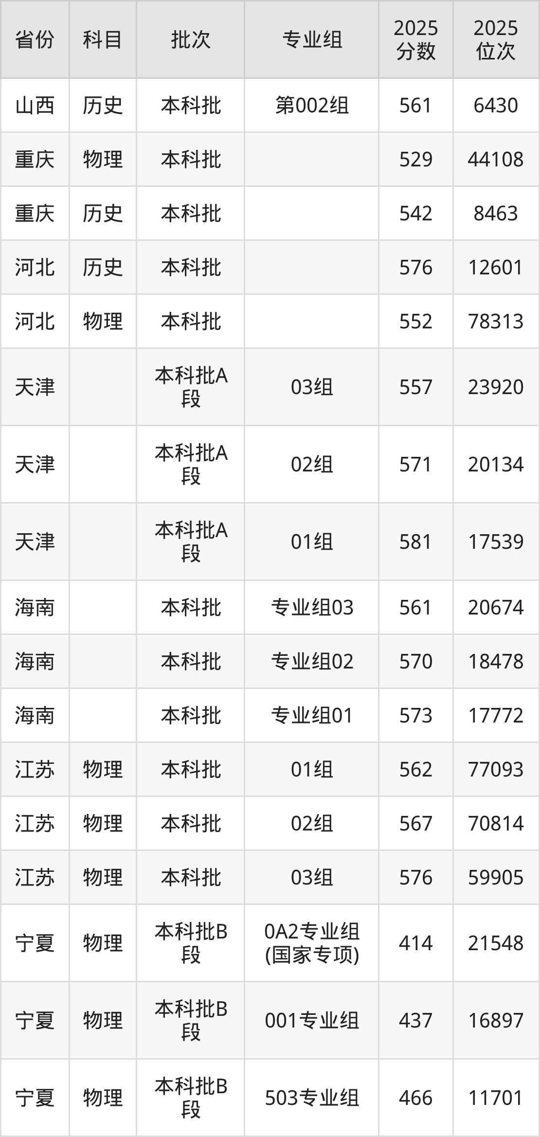 石河子大学第002组:2025年投档录取最低分为561分,录取最低位次为6430名。