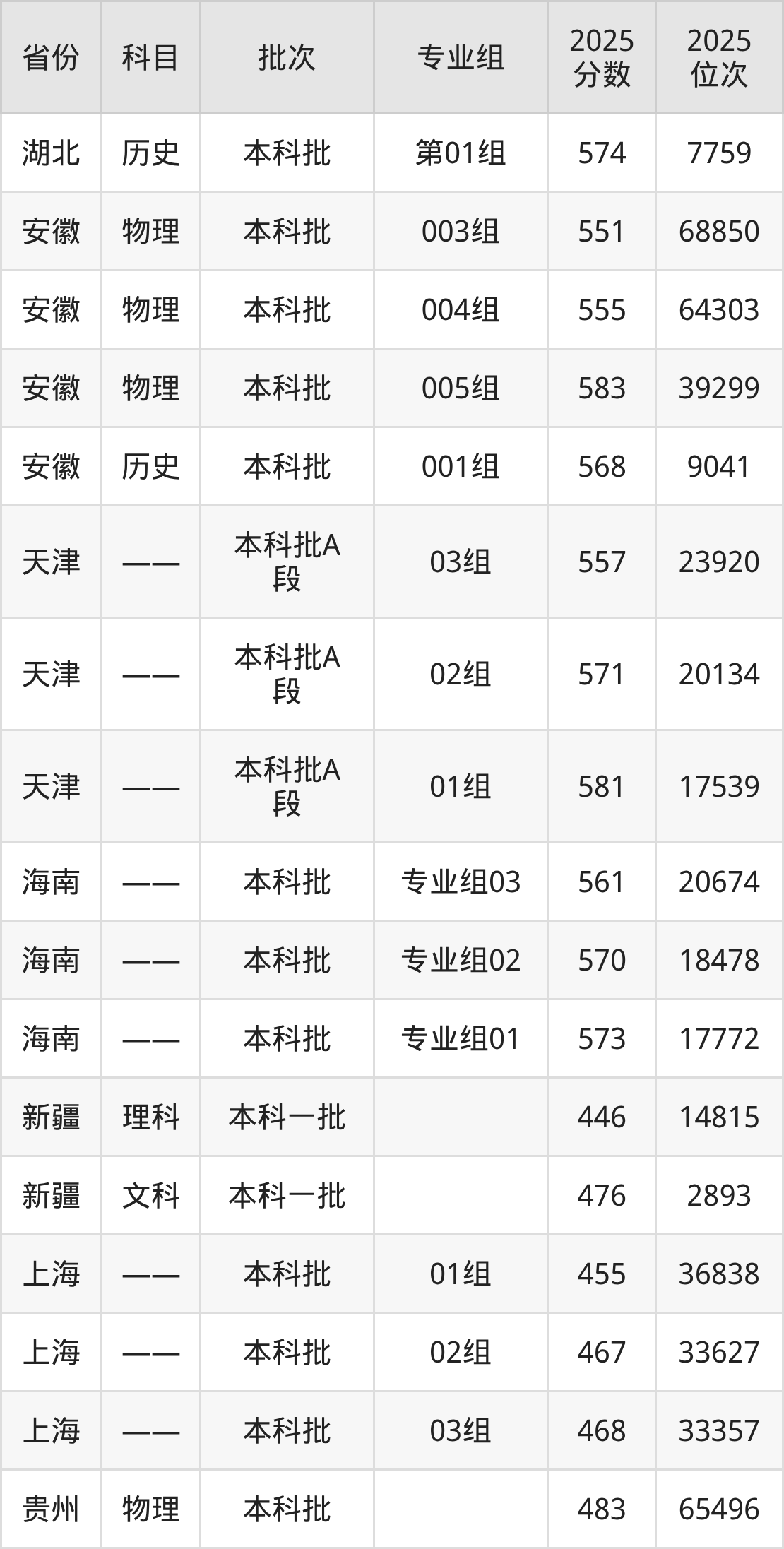 下面是2025年石河子大学全国录取分数线一览表,请查阅。
